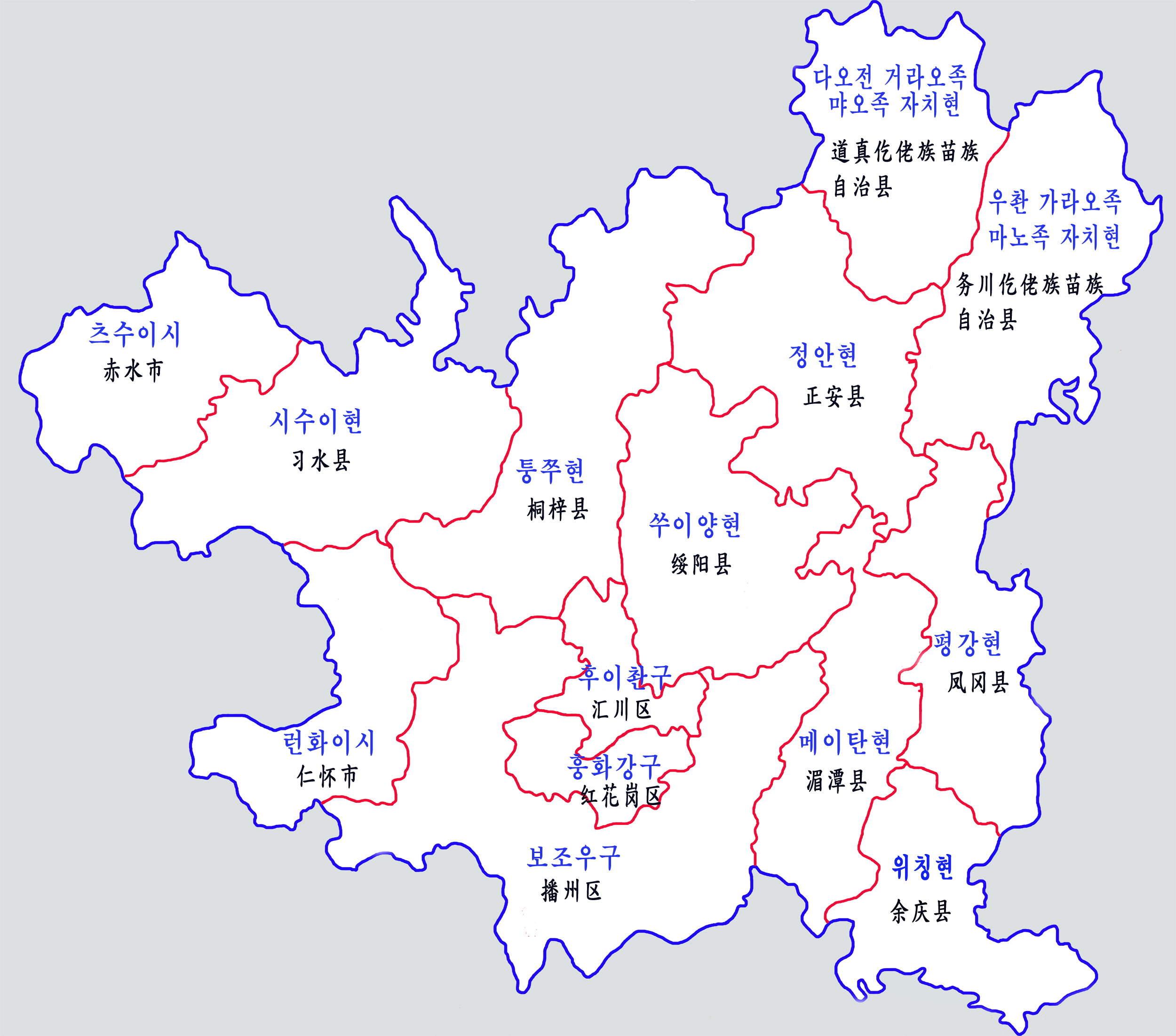 위치 | 구이저우 성 내 쭌이 시의 위치 |