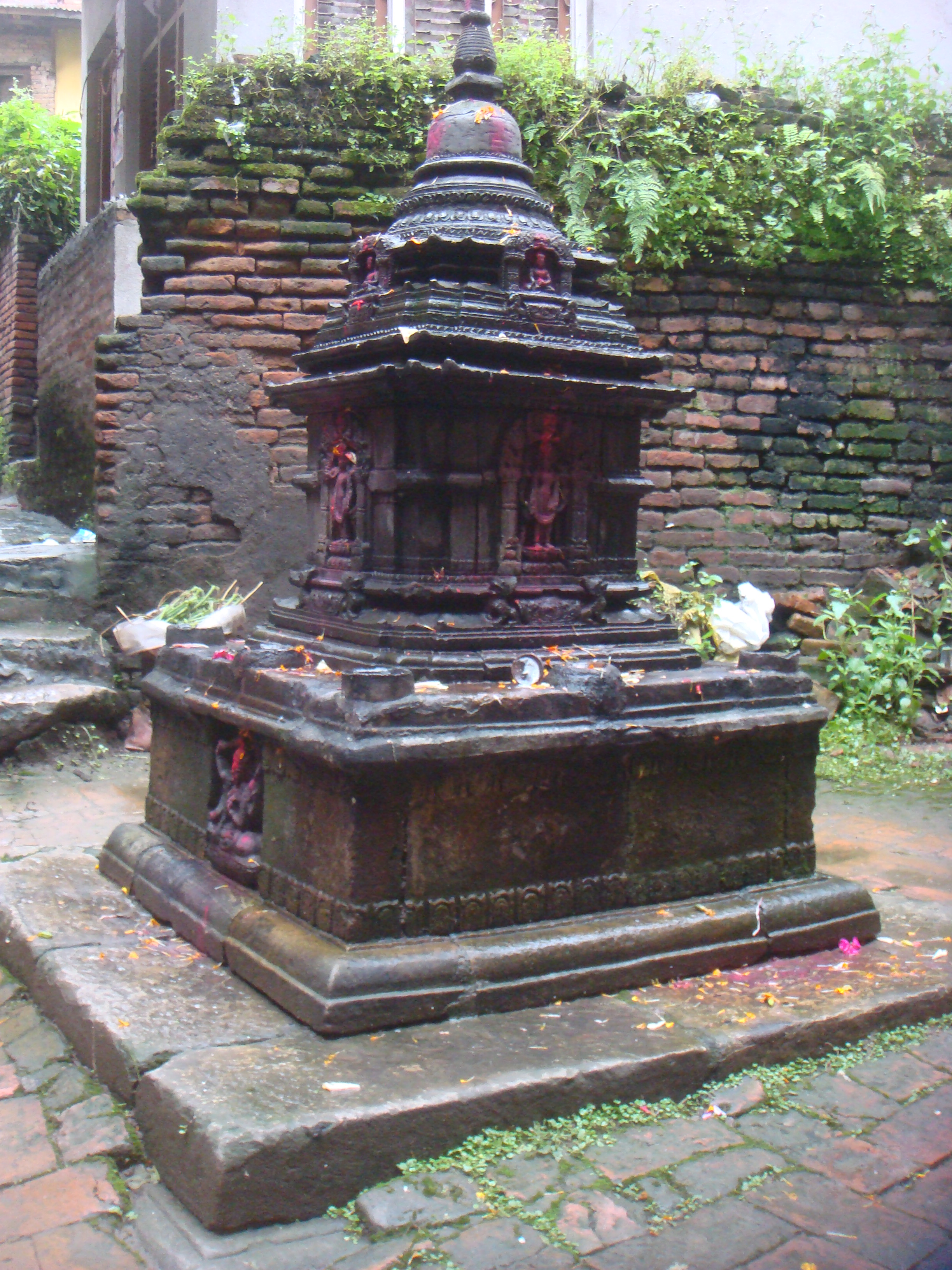 네팔에서 "차이티야"는 건물이 아니라 받침대 위에 탑과 유사한 형태를 가진 사당 기념물을 의미하며, 종종 매우 정교하게 장식되어 있다. 차이티야는 일반적으로 야외 종교 구역에 위치하며 높이는 평균 약 1.22m~약 2.44m 정도이다. 네팔의 셰르파, 마가르, 구룽, 타망, 네와르 등 여러 민족은 유족들이 죽은 사람을 기리기 위해 차이티야를 건설한다. 카트만두 계곡의 네와르족은 12세기 이후부터 차이티야의 네 방향에 4명의 타타가타 이미지를 추가하기 시작했다. 차이티야는 아름답게 조각된 돌과 진흙 모르타르로 건설되며, 마하부타— 흙, 공기, 불, 물, 공간으로 구성되어 있다고 한다.[49]