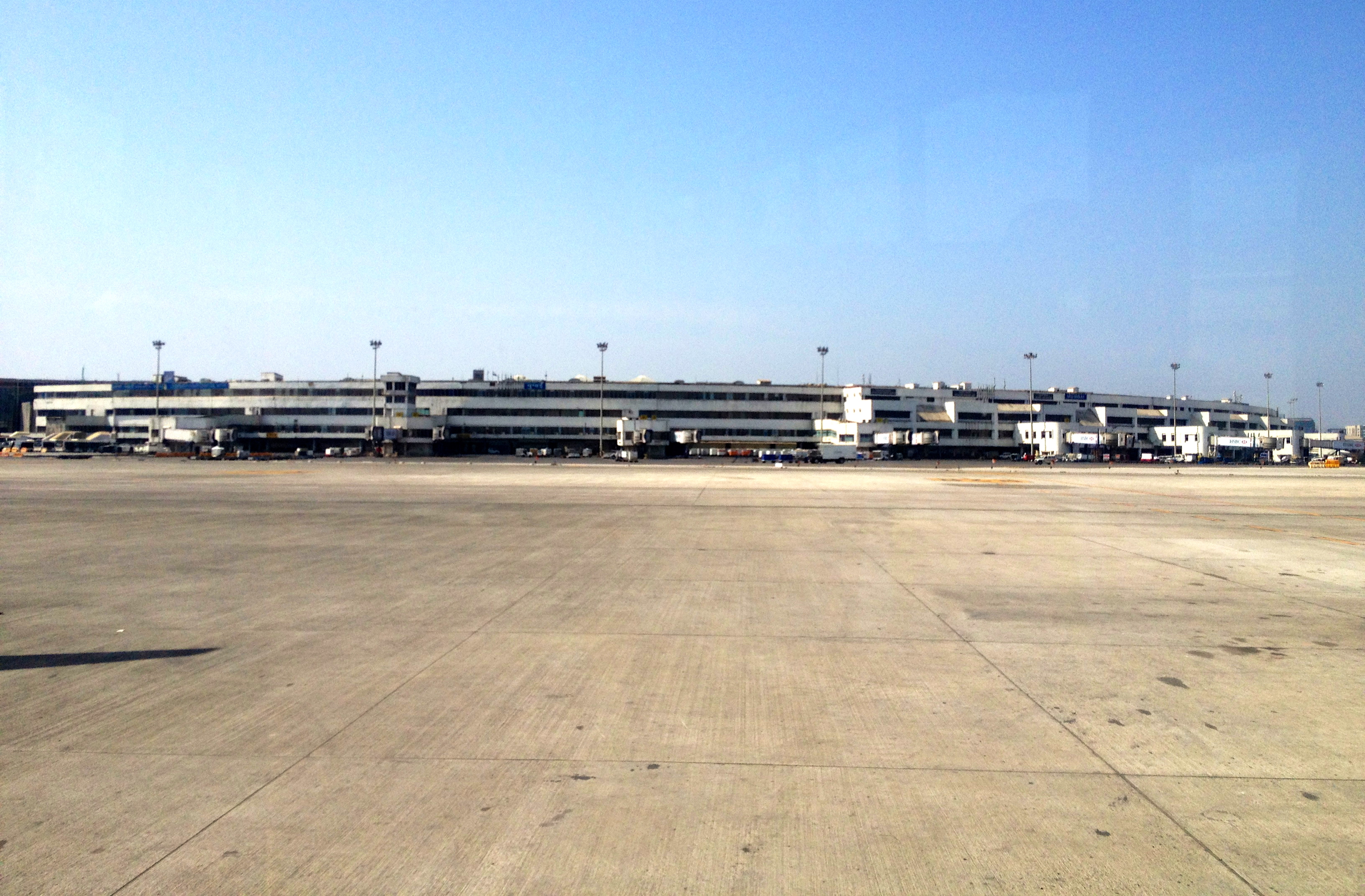 원래 터미널은 14개의 코드 E 접촉식 탑승구가 있는 볼록한 형태의 단일 콘코스 건물이었다. 더 큰 T2 에이프런은 15개의 코드 D/E와 6개의 코드 C 원격 탑승구를 추가로 제공했다. 이는 기존 에이프런에 총 35개의 탑승구가 있음을 의미했다.[55]