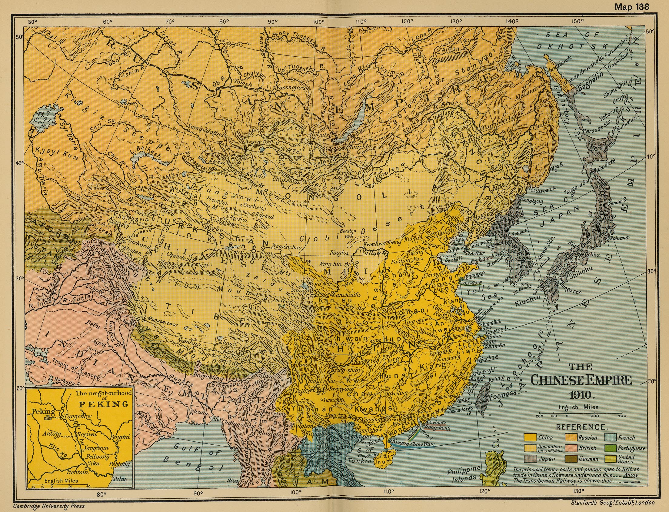 중국에서는 1911년 신해혁명에서 삼민주의를 내걸고 만주족이 지배하는 청 왕조를 타도하여 한족의 독립 및 각 민족의 평등을 부르짖으며 중화민국을 건국했다. 중화민국은 청나라의 지배 지역 전부를 계승하는 것으로 하여 한족과 티베트족, 위구르족, 몽골족, 만주족의 원래 영토 전부를 중화민국의 영토라고 주장하며, 청 왕조 해체 후의 각 민족의 독립을 인정하지 않았다.