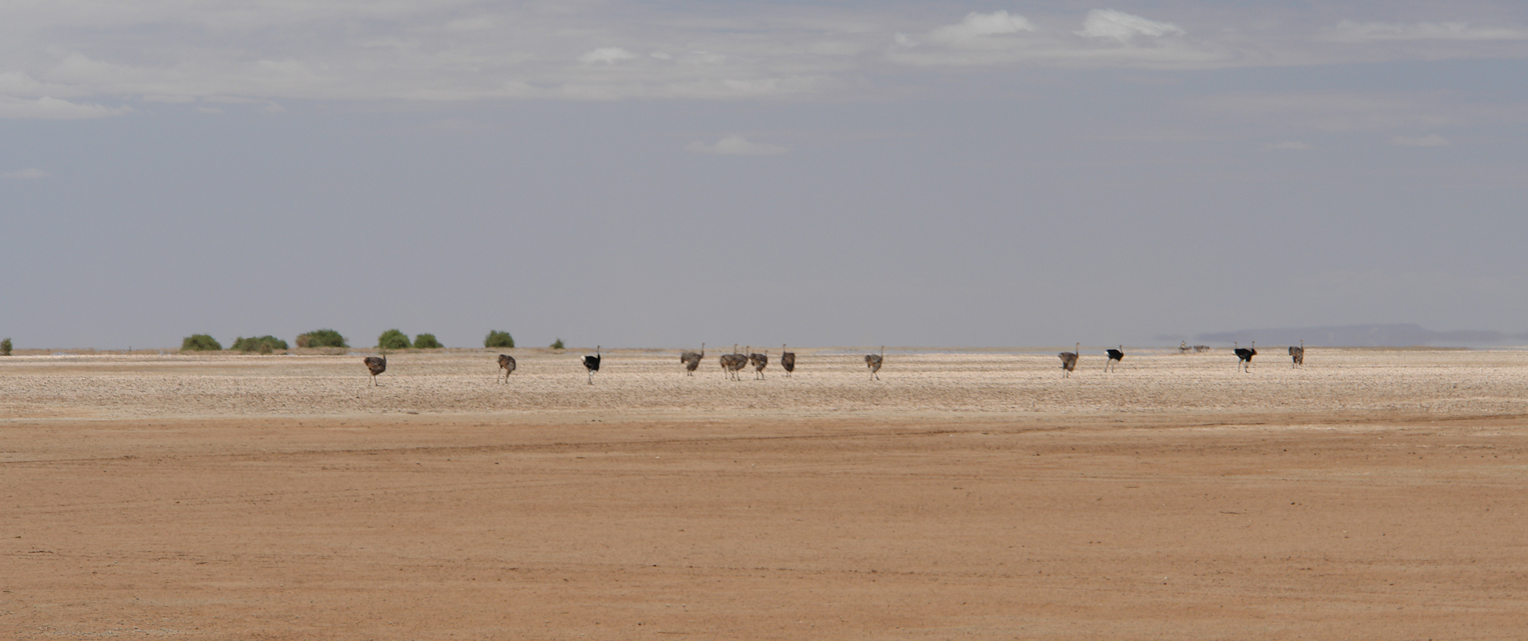 이전 호수 바닥이었던 곳에서도 일부 식물이 자란다. 그곳에서는 ''Lagenantha nogalensis''를 볼 수 있다. 사막 가장자리에서는 ''Dasysphaera prostrata'' 또는 ''Hyphaene coriacea'' 같은 식물을 찾을 수 있다.[8]