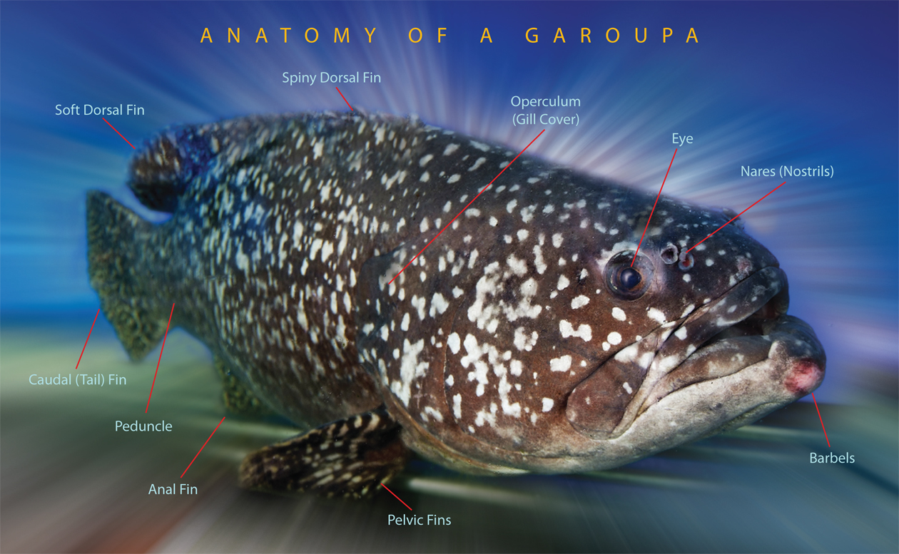 자이언트 그루퍼 | Epinephelus lanceolatus | 최대 전체 길이 2.7m, 체중 400kg. 각 지느러미가 노란색, 검은 반점이 지느러미 연조에 따라 늘어섬. | 남일본 이남의 태평양과 인도양의 열대 지역, 암초나 산호초 | |