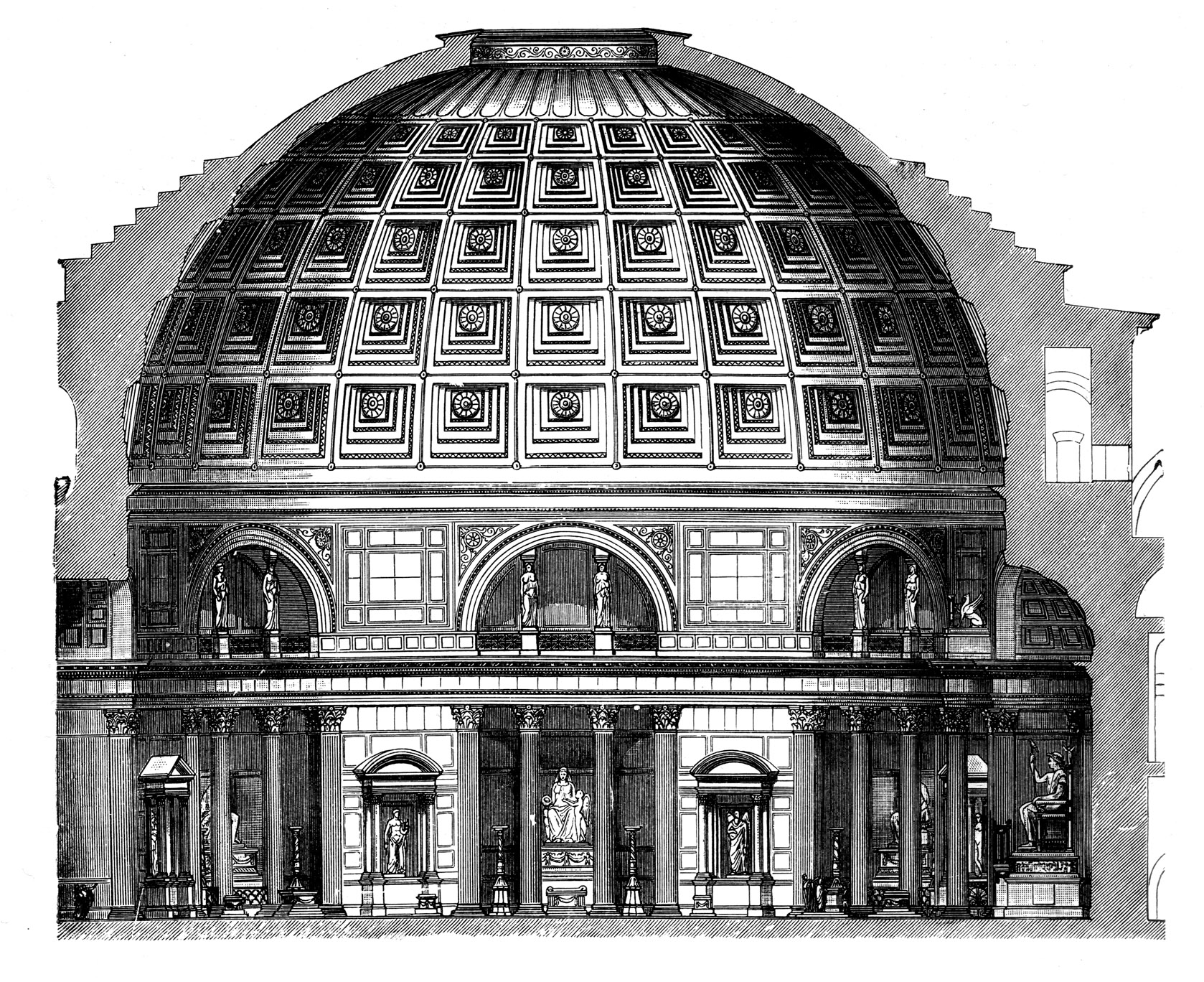 판테온의 돔 구조 (맨 위쪽의 원형 창이 오쿨루스)