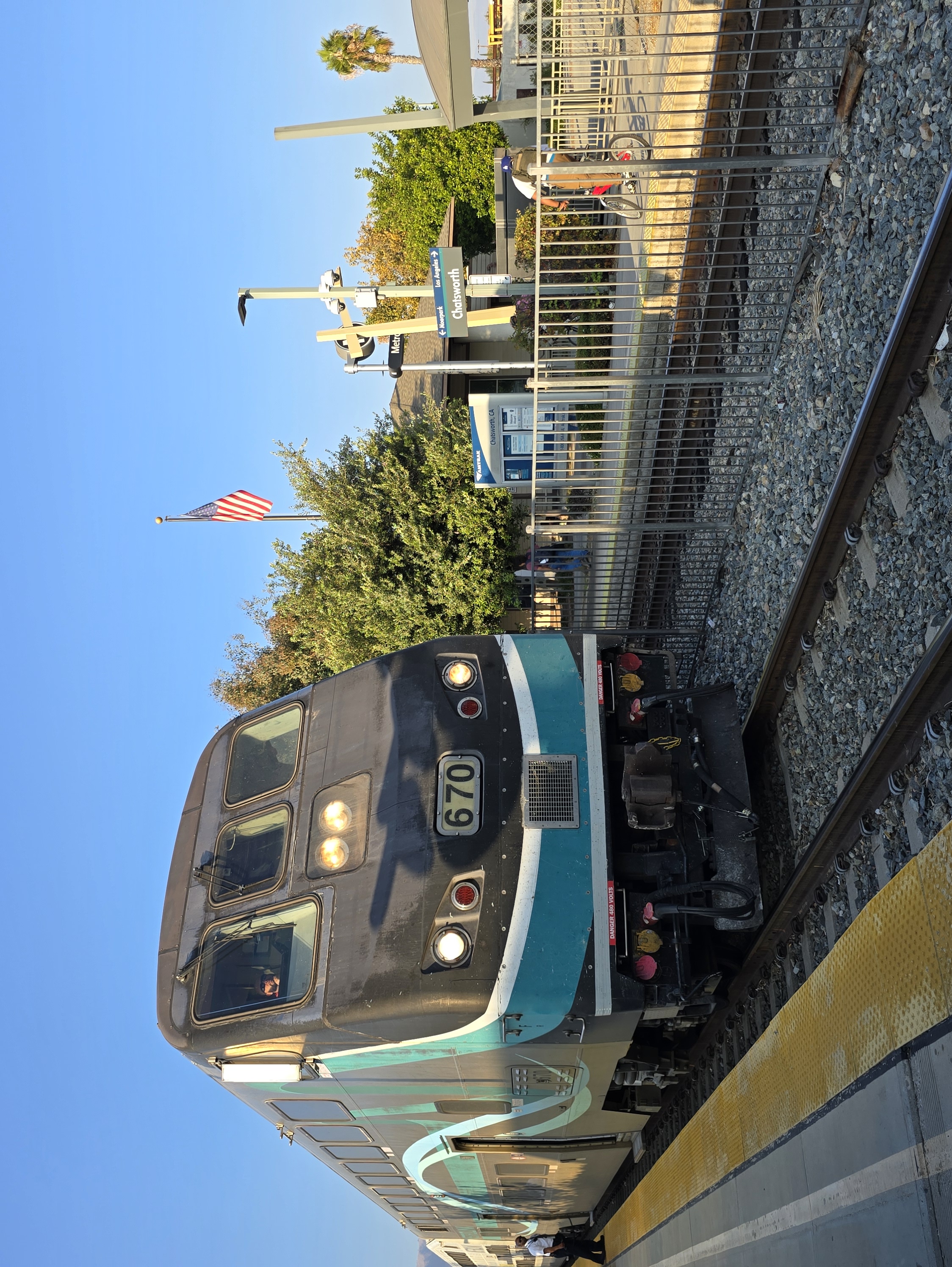 매일 10대의 퍼시픽 서프라이너 열차가 정차하며, 주중에는 매일 20대의 메트로링크 열차가 정차한다.
