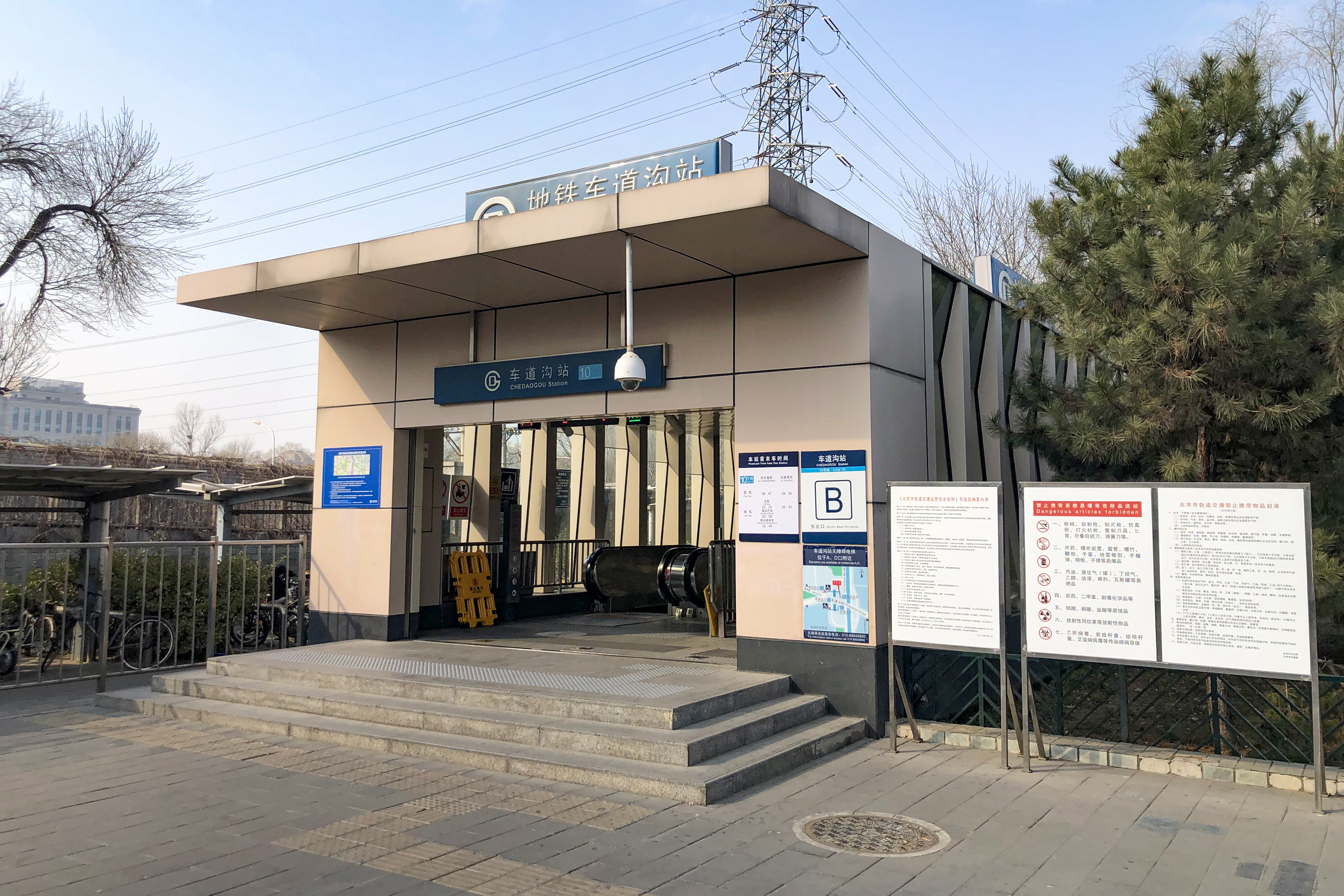 처다오거우역은 베이징 지하철 10호선의 역으로, 지하 2층 구조의 섬식 승강장으로 설계되었다. 이 역은 즈주위안로와 란딘창 남로가 교차하는 지점에 위치하며, 10호선 내선 순환 열차는 창춘차오역 방면으로, 외선 순환 열차는 츠서우쓰역 방면으로 운행한다. 또한, A-D 출구가 있으며, 인근에는 중국 광다은행 센트리시티 지점, 베이팡랑위에 호텔 등이 있다.