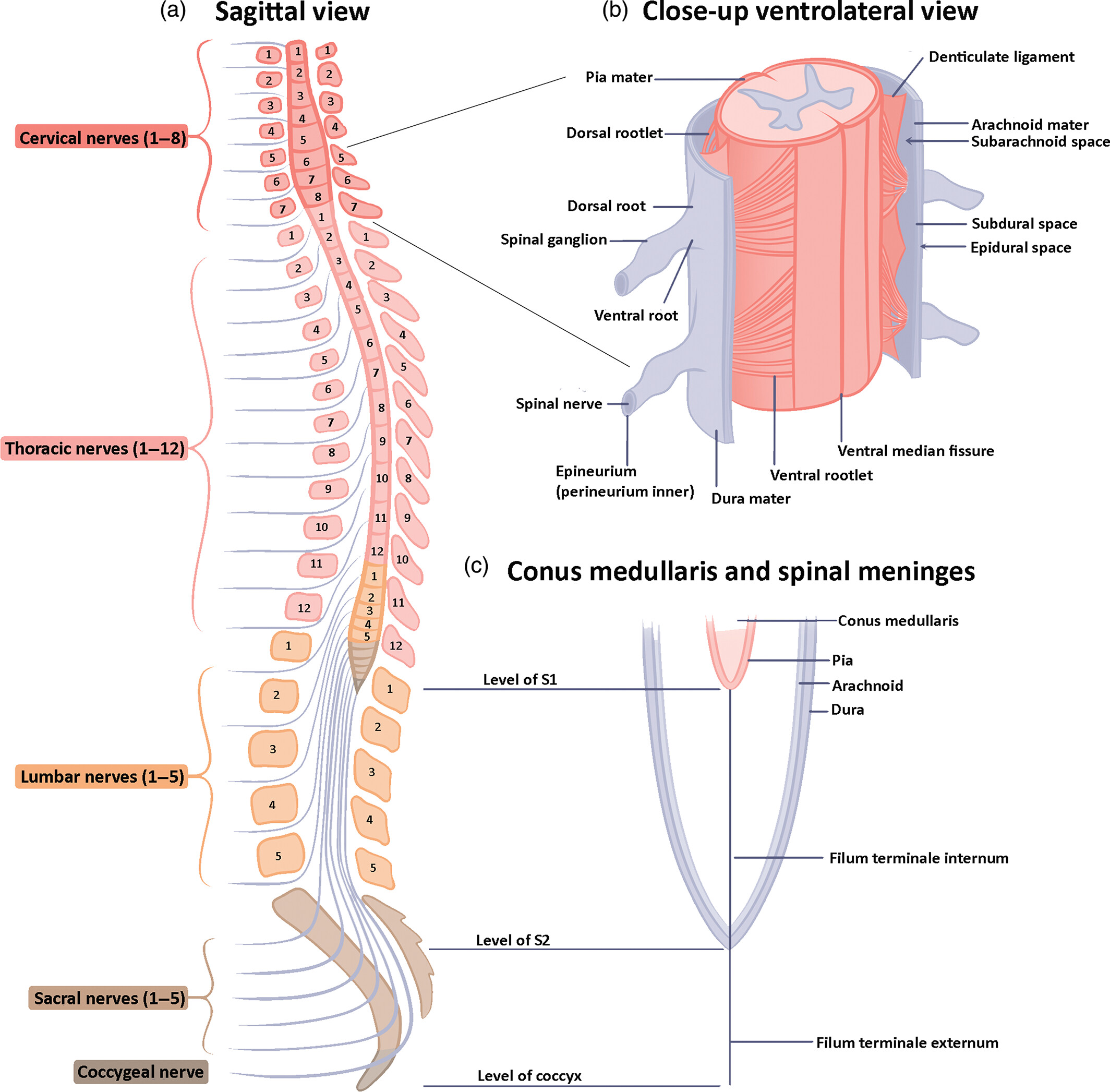 사람의 척수에는 31개의 척수 신경 분절이 있으며 다음과 같이 분류된다.