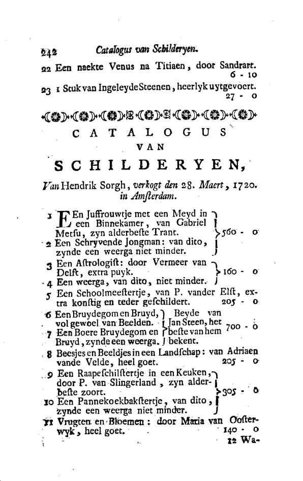《천문학자》가 처음 기록된 것은 1713년 4월 27일 로테르담에서 열린 경매에서 《지리학자》와 함께 판매되었을 때이다.[31] 당시 그림 구매자는 헨드릭 소르흐로 추정되는데, 1720년 3월 28일 암스테르담에서 열린 그의 재산 경매에 두 그림이 모두 나왔기 때문이다. 당시 기록에는 두 그림을 "점성술사: 델프트의 페르메이르가 그린 최상품" (Een Astrologist: door Vermeer van Delft, extra puyknl), "동일인이 그린 비슷한 작품, 역시 마찬가지" (Een weerga, van ditto, niet mindernl)라고 소개했다.