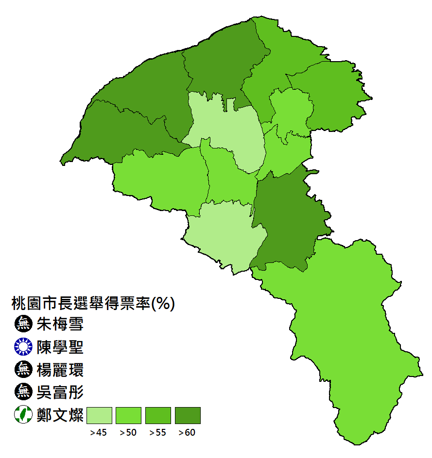 2018년 타오위안시 시장 선거 결과[24] | |||||