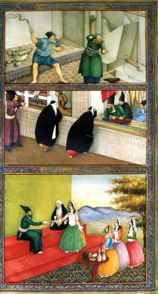 『아라비안 나이트』는 이란(페르시아)에서부터 인도(인디아)에까지 지배하는 대왕 샤리야르 왕과 그의 동생 이야기로 시작한다. 샤리아르 왕은 동생의 아내와 자신의 형수가 노예들과 불륜을 저지르는 것을 목격하고 큰 충격을 받는다. 이 때 마신의 아내가 남편 몰래 상인과 키스를 나누는 이야기가 등장하는데, 이는 이슬람이 조로아스터교의 영향을 받아 선신과 악신을 구분하는 종교관을 갖고 있음을 보여준다.