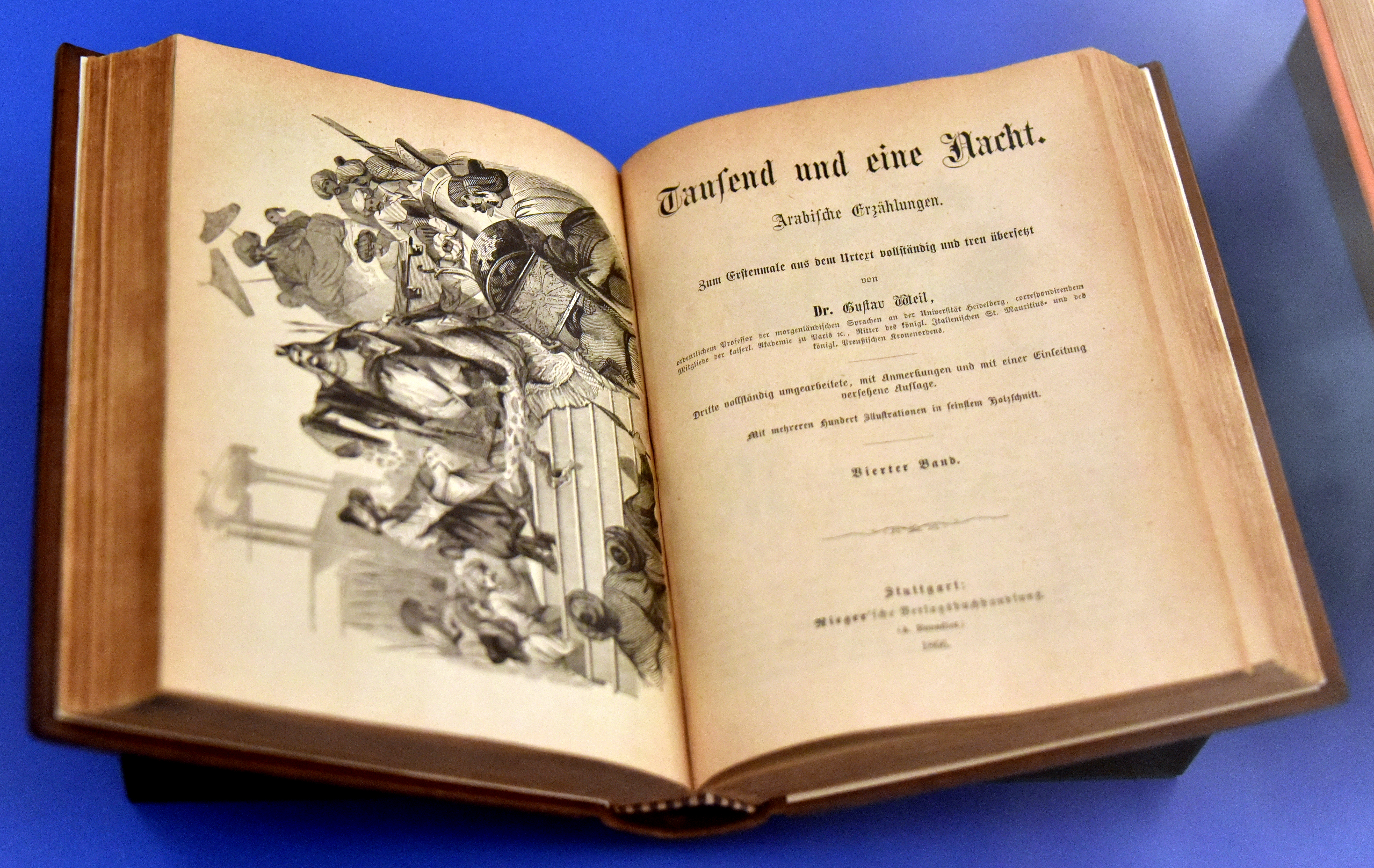 아랍어 사본에는 결말이 없고, 야(夜)의 수는 282야(약 35편) 정도였으나, 갈랑의 번역판(1704년~1717년)에서는 약 480야로 늘어났다.[118] 이후 유럽에서는 나머지 이야기를 찾기 위한 노력이 이어졌고, 중동에서 들은 이야기들이 무질서하게 추가되면서 19세기에는 현재와 같은 1001야(夜)를 포함하는 형태로 출판되었다.