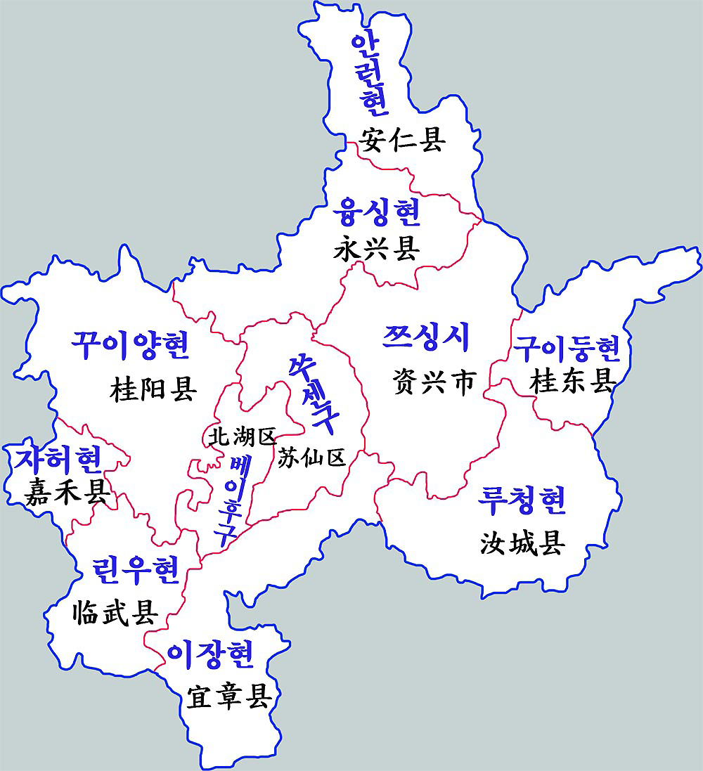 구이둥 현(桂东县) | 1453km2 | 17만 명 |