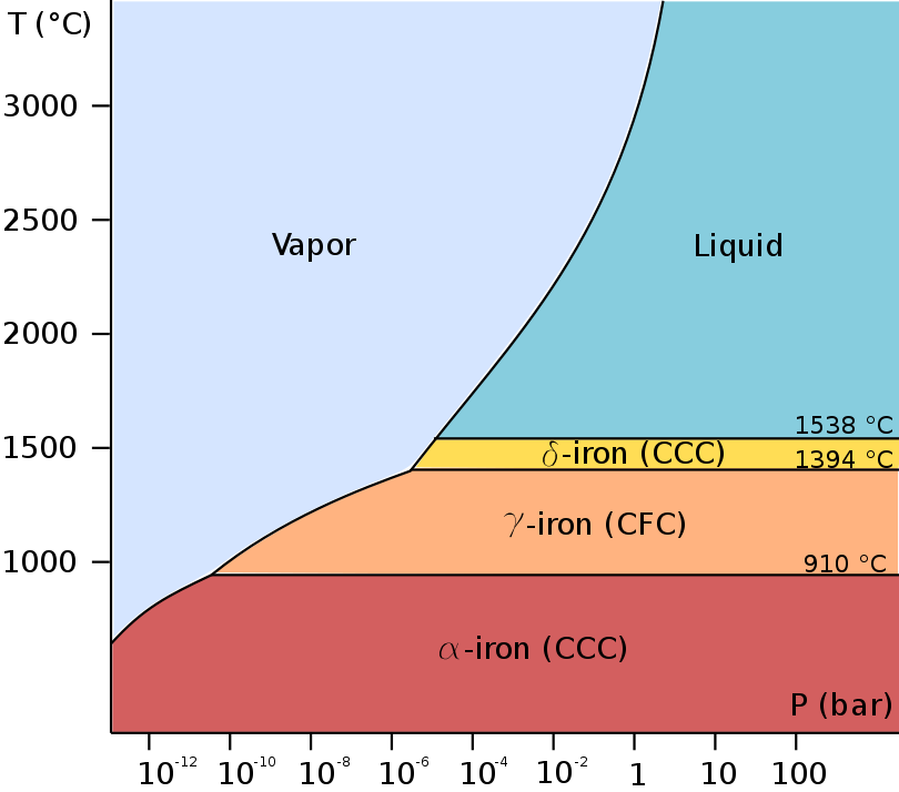 순수한 고체 철의 상변화를 온도에 따라 정리하면 다음과 같다.