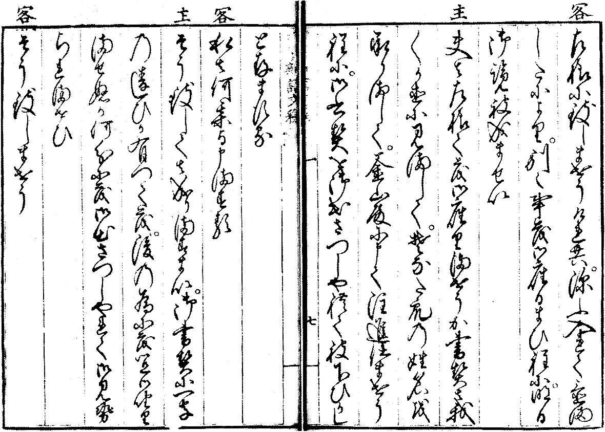제1권~9권에서는 히라가나 위주이며, 한자는 '御'와 '申'뿐이다. 대체로 표음 표기이며, 'い', 'ゑ', 'お', 'う', 'わ'로 통일되어 있다. 우단·오단 장음은 대체로 역사적 가나 표기법과 유사하다.
