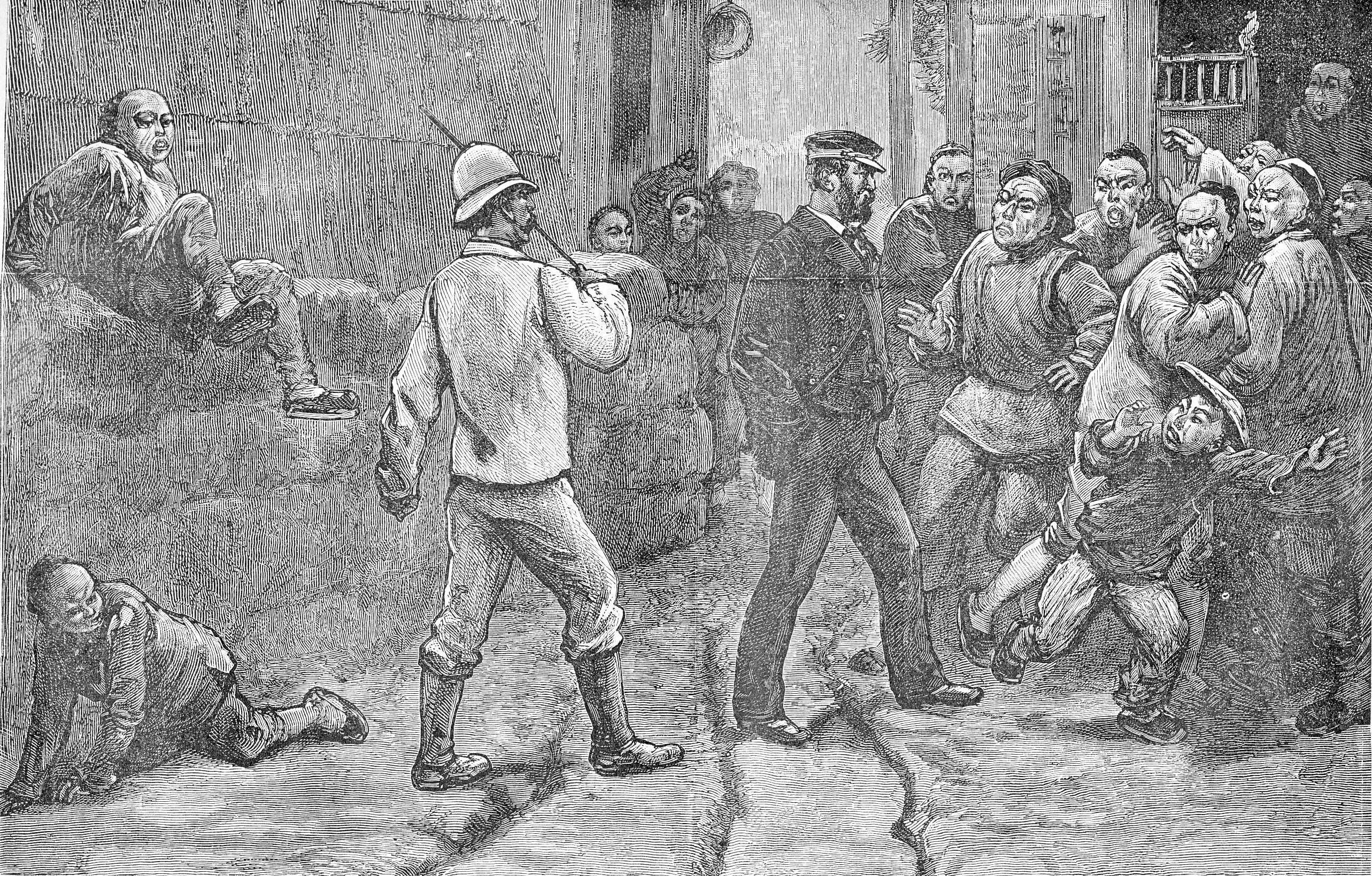 프랑스와 중국 사이의 긴장 고조는 1883년 가을 중국 내에서 반외국인 시위를 야기했다. 가장 심각한 사건은 광저우에서 발생했으며, 유럽 상인들의 재산과 삼원(Shameian)섬이 공격받았다. 여러 유럽 열강은 자국민 보호를 위해 광저우에 군함을 파견했다.