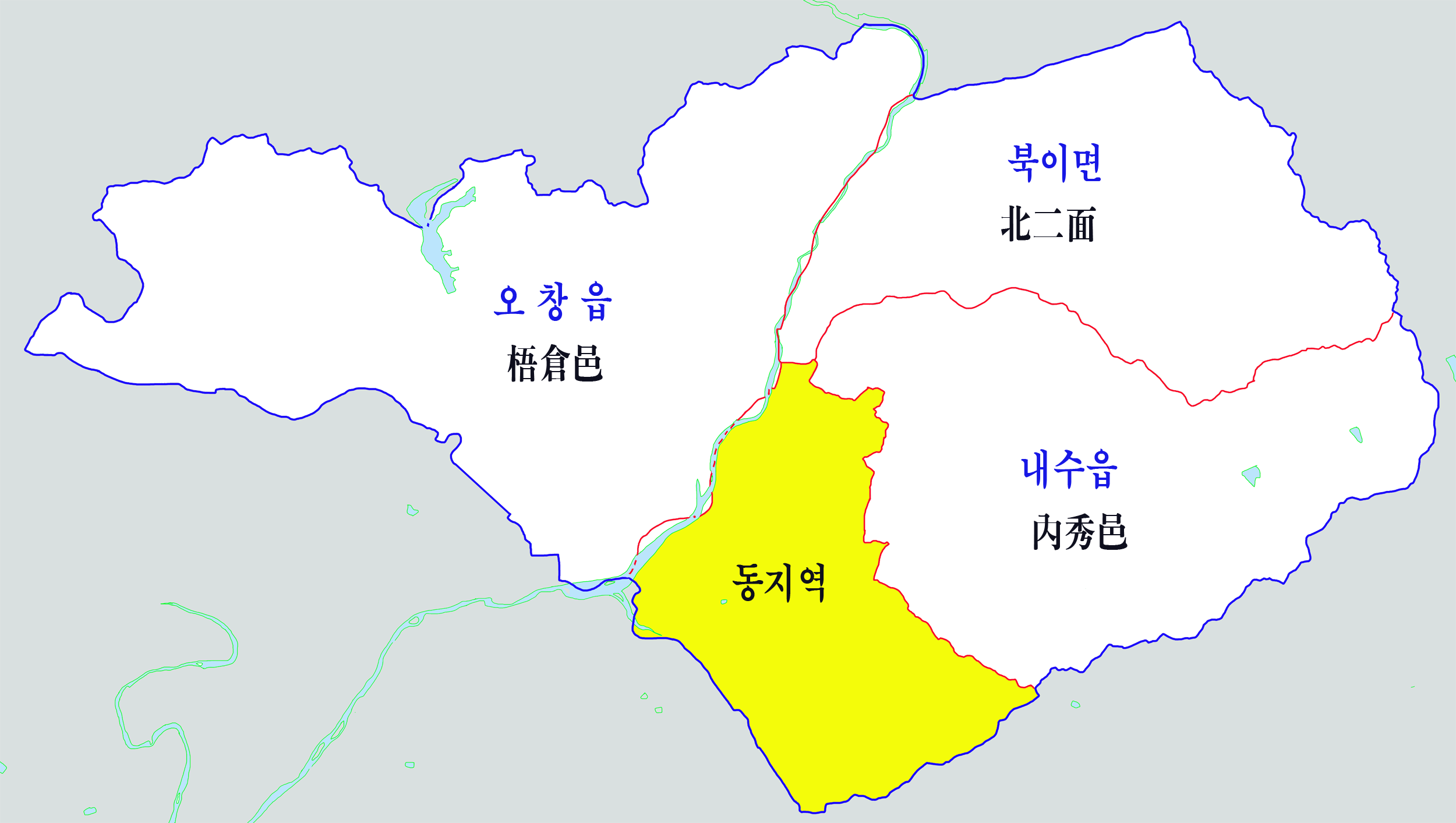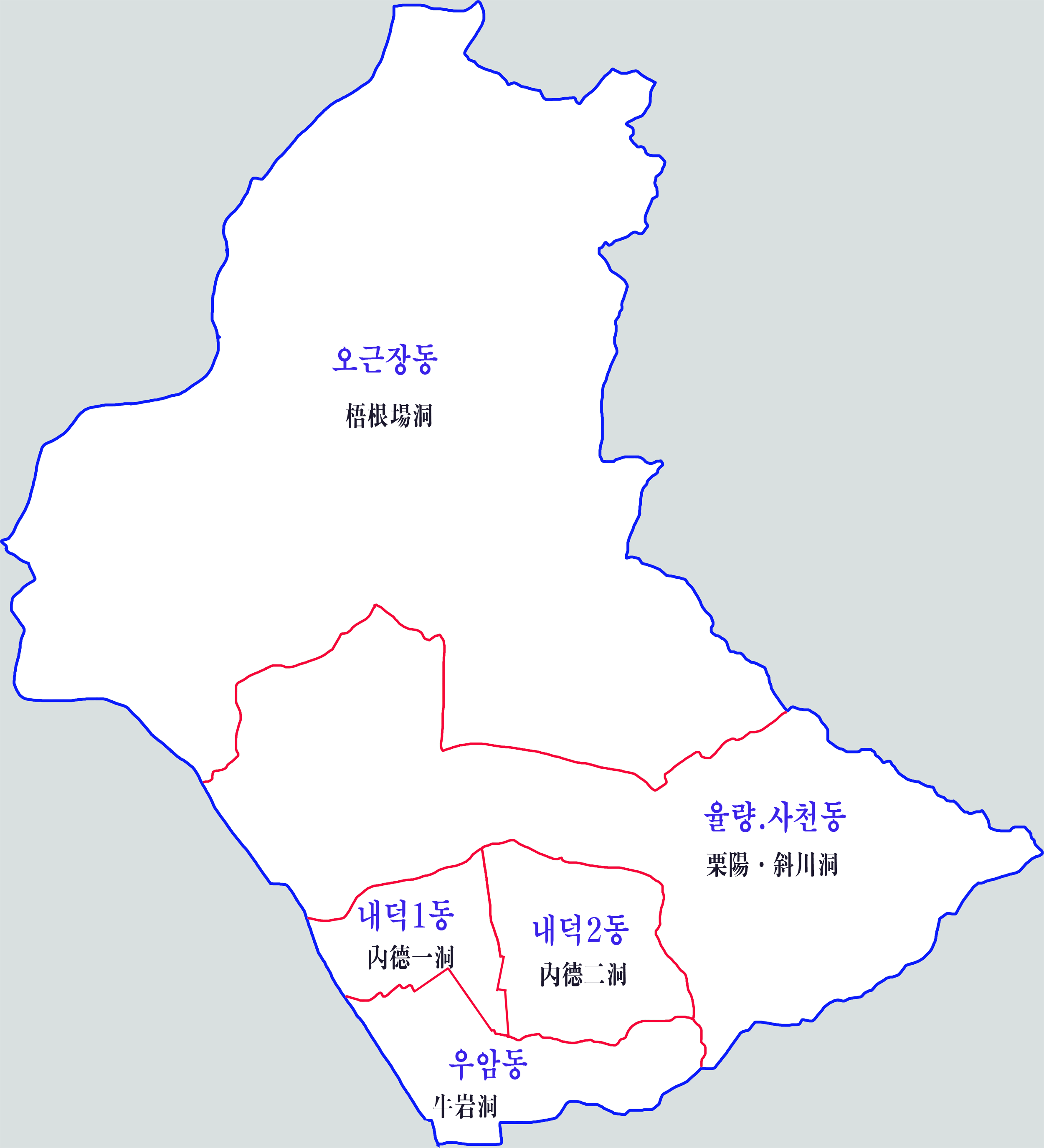 오근장동 | 주성동, 주중동, 인상동, 인하동, 인북동, 오동동, 외남동, 외평동, 외하동 |