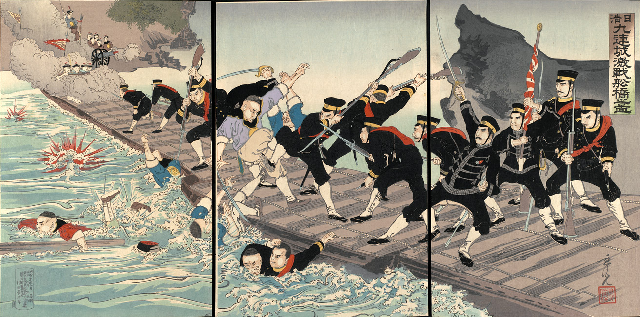 성환 전투와 평양 전투조선의 친일 내각으로부터 청나라 군대를 축출할 권한을 얻은 오시마 요시마사 소장은 약 3,500명의 일본군 여단을 이끌고 한양에서 아산만으로 이동했다. 이곳에는 아산과 성환(현재 천안시 서북구 성환읍)에 주둔한 약 4,000명의 청나라 군대가 있었다. 1894년 7월 28일, 양측 군대는 아산 외곽에서 다음 날 아침까지 전투를 벌였다. 이 전투에서 수적으로 열세였던 청나라 군대는 점차 밀려 평양으로 후퇴했다. 청나라 군대는 약 500명의 사상자를 냈지만, 일본군 사상자는 100여 명에 불과했다. 8월 1일, 청나라와 일본 사이에 공식적으로 전쟁이 선포되었다.