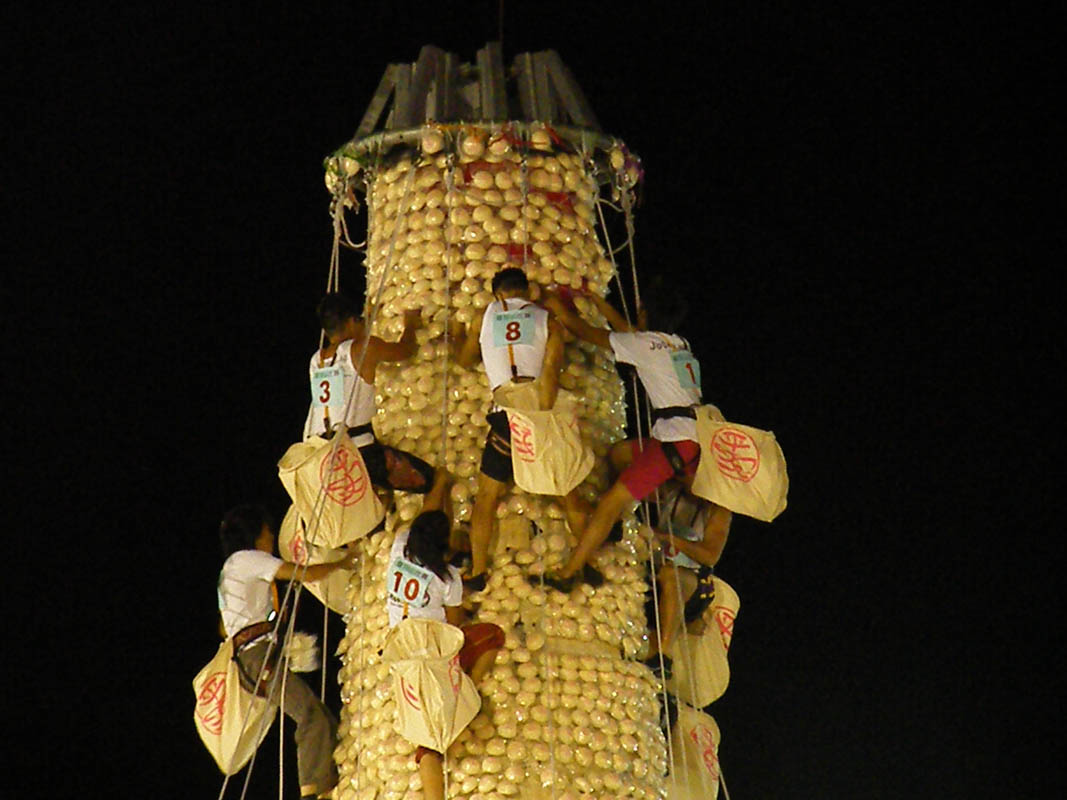 섬에는 다양한 전통 사원들이 자리 잡고 있으며, 매년 음력 4월 8일 전후에는 북제 사당을 중심으로 섬의 가장 큰 축제인 태평청초(太平淸醮, 속칭 포산절 또는 만두 축제)가 열려 많은 관광객이 방문한다.