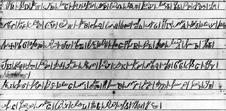 세쿼야가 창제한 체로키 문자 원형. 필기체와 인쇄체 모두 표시되어 있다.