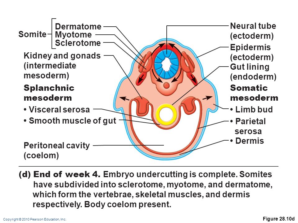 배아의 앞뒤축상의 위치에 따른 전체 체절의 운명은 체절형성이 일어나기 전부터 혹스 유전자에 의해 이미 예정화되어 있다. 이때 형성된 정체성은 체절이 만들어지고 나서도 변함없이 유지되는데, 체절을 다른 부위로 이식하더라도 원래 부위에서 만들어졌을 구조가 그대로 만들어진다는 사실을 통해 이를 알 수 있다.[3] 반면 각 체절 내의 세포들은 비교적 오랫동안 가소성을 유지한다. 즉 체절형성의 늦은 단계에서도 주변 환경에 따라 체절 안의 특정 세포가 어떤 구조로 발달할지 달라질 수 있다.[3]2. 2. 유래 구조