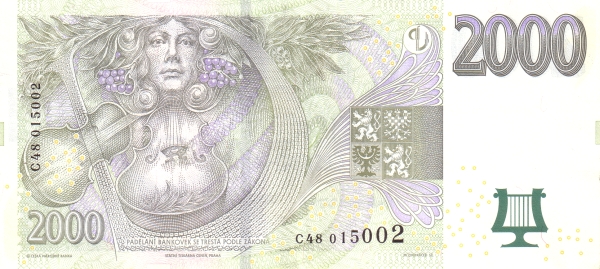 -- | -- | 2,000코루나 | 녹색 | Emmy Destinn|에미 데스틴영어 | 에우테르페와 바이올린 |