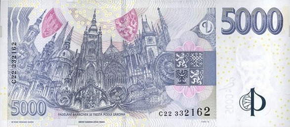 -- | -- | 5,000코루나 | 남색, 보라색 | 토마시 마사리크 | 성 비투스 대성당 |