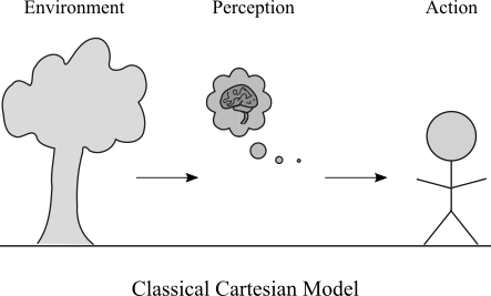 신체, 세계, 지각, 행동이 독립적인 것으로 이해되는, 고전적인 데카르트적 마음 모델