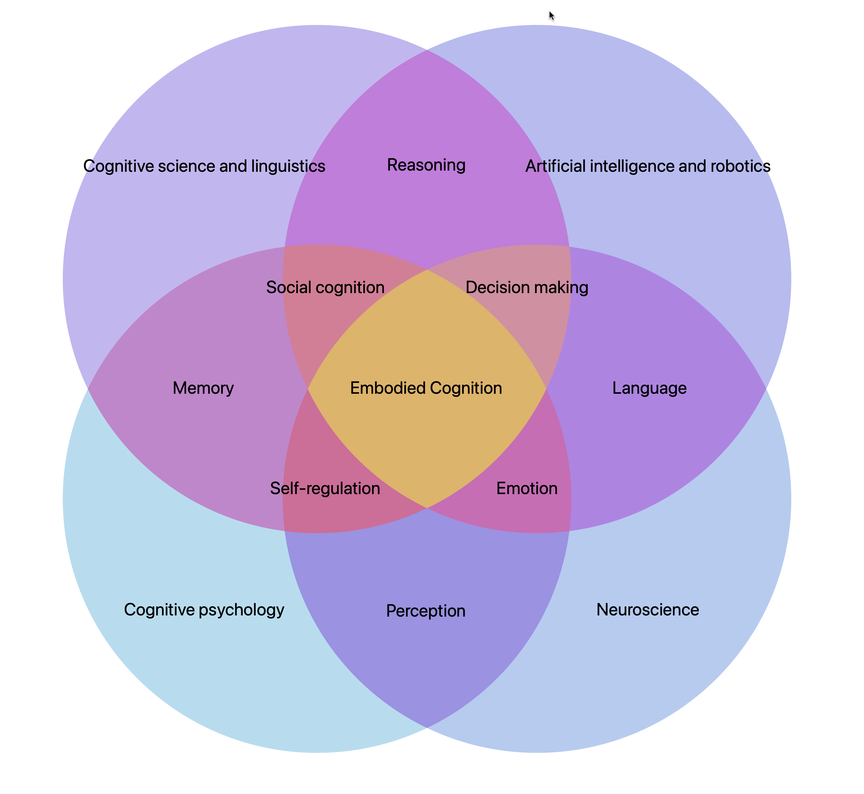 체화 이론은 철학, 인지 과학, 인공 지능, 심리학, 신경 과학 등 다양한 분야의 연구자들에게 영향을 주었다. 그러나 신체, 경험, 문화, 맥락 및 세상 속 에이전트의 인지 메커니즘을 강조하다 보니, 체화된 인지에 대한 서로 다른 견해와 접근 방식이 종종 중복되기도 한다. 예를 들어, 확장된 인지와 상황적 인지 이론은 일반적으로 얽혀 있으며 항상 명확하게 분리되지 않는다. 따라서 체화된 인지는 "잘 정의된 통일된 이론이라기보다는 연구 프로그램"으로 간주하는 것이 더 낫다고 여겨진다.[3]