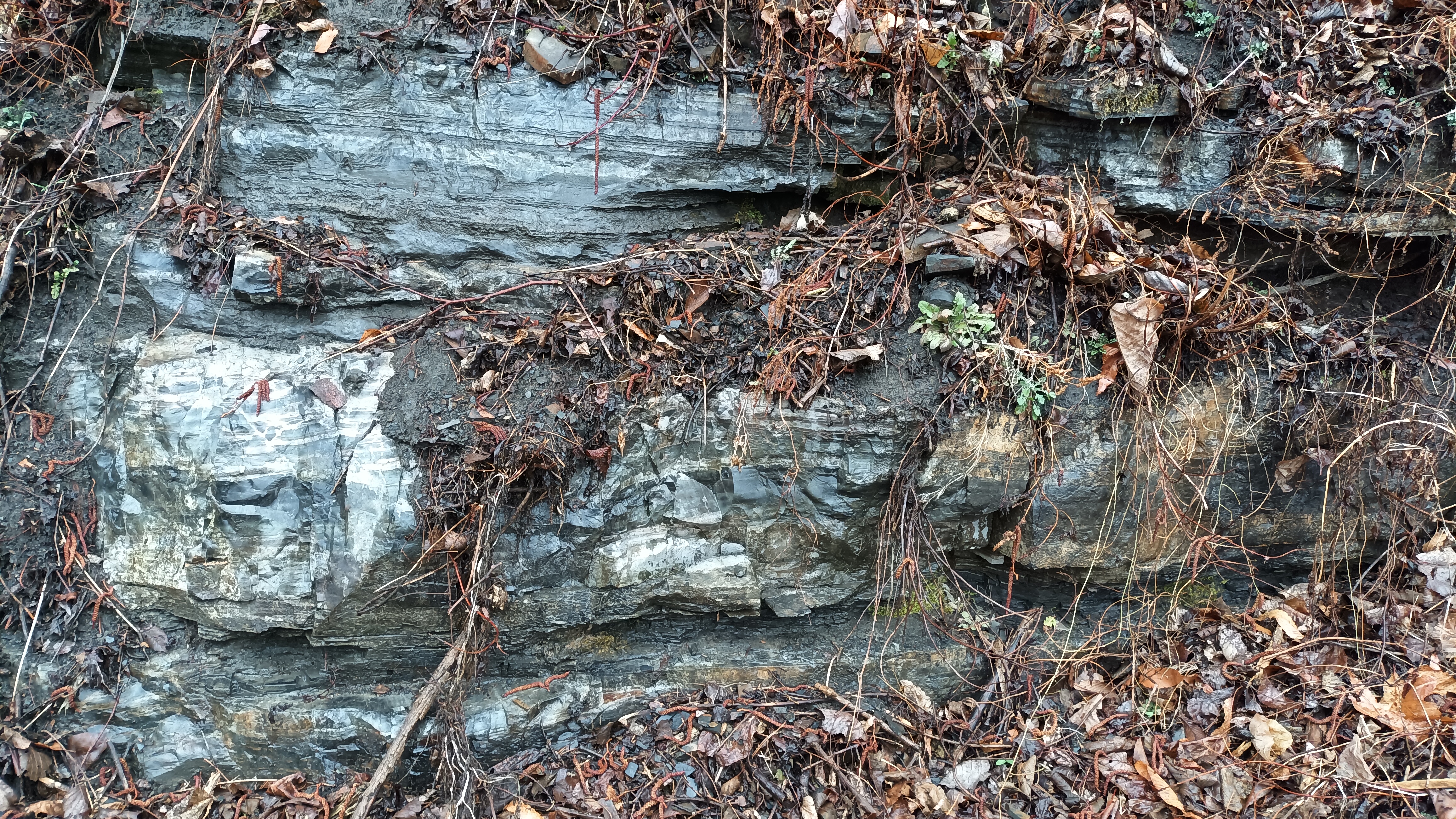 초계 분지 일대에는 중생대 백악기 경상 누층군의 퇴적암 지층들과 이를 관입한 화성암이 분포한다. 진주층은 사암, 셰일, 이암에 흑색 내지 암회색 셰일이 협재되며 드물게 역암이 있다. 칠곡층은 사암과 적색 셰일이 교호하며 열변성작용을 받았다. 흑운모 화강암은 초계 분지의 남쪽에서 칠곡층을 암주상으로 관입하였다.[1]