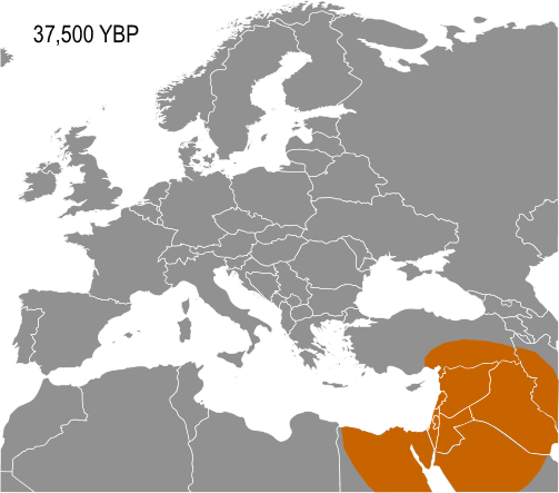 4만 5천 년 전에 유럽으로의 인류 확산이 시작되었고, 그 후 유럽 전역에 인류가 정착하기까지 1만 5천 년에서 2만 년 정도 걸린 것으로 추정된다[238][239]。
