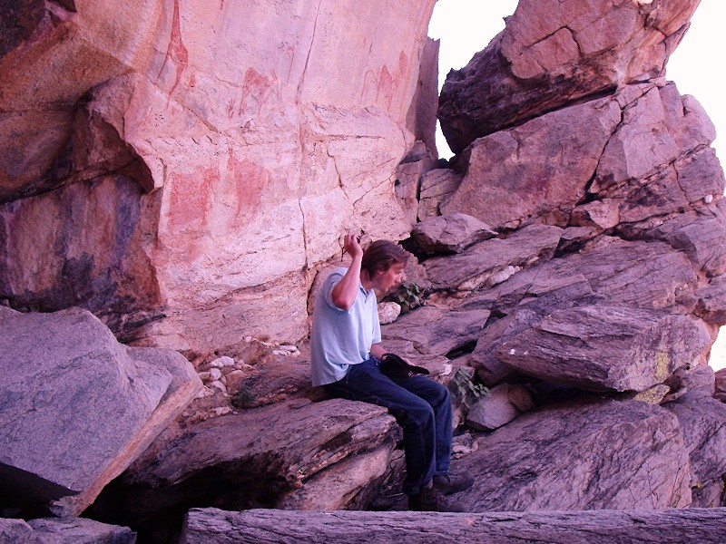 2006년, 오슬로 대학교의 쉴라 쿨슨은 코뿔소 동굴로 알려진 이 유적지에서 7만 년 된 유물과 뱀의 머리를 닮은 바위가 발견되었으며, 이것이 인류 최초의 의례로 여겨진다고 주장하면서 언론의 주목을 받았다.[11] 그녀는 또한 이 유적지가 의례의 장소였다는 해석을 뒷받침하기 위해 묘사된 다른 동물들을 근거로 제시했다. "이 동굴에서 우리는 산족이 가장 중요하게 여기는 세 가지 동물, 즉 뱀, 코끼리, 기린만을 발견할 수 있습니다."[11]