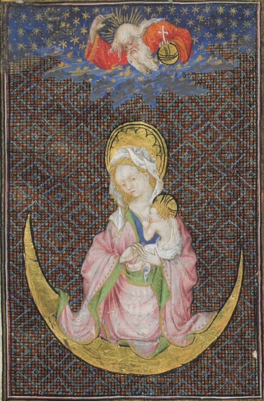 초승달 위에 서거나 앉아 있는 성모 마리아를 묘사하는 로마 가톨릭 유행은 15세기에 발전했다.