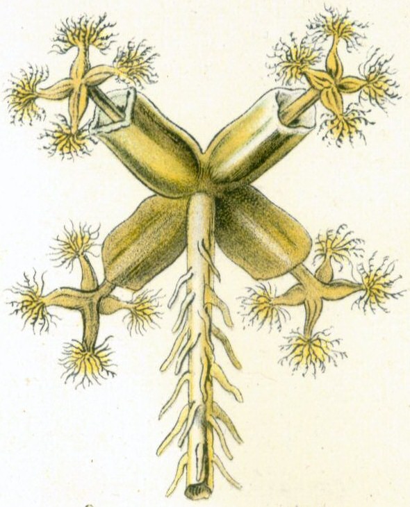 그러나 포자체가 발달하는 유성생식은 드물게 관찰된다. 이는 이 종의 인위적인 확산의 결과로 수정기와 장란기의 분포가 불연속적으로 나타나기 때문으로 추정된다.[6] 유성생식을 할 경우, 네 개의 장란기가 십자 모양의 머리에 배열되어 배수체 포자체를 형성하는데, 이 때문에 종명으로 '십자가'를 의미하는 ''cruciata''가 붙었다.