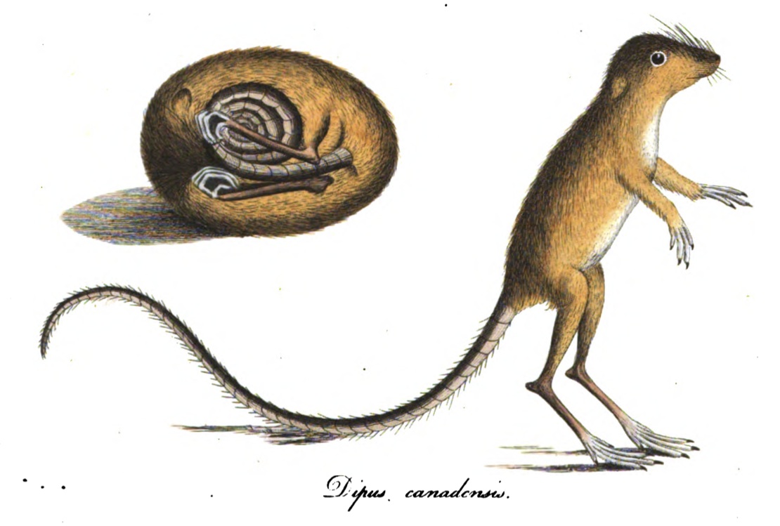 1787년 퀘벡 근처에서 발견된 뛰는 쥐는 1797년 토마스 데이비스 소장에 의해 Dipus canadensis로 특징지어졌으며 런던 린네 학회에 의해 설명되고 그림으로 묘사되었다.[8]