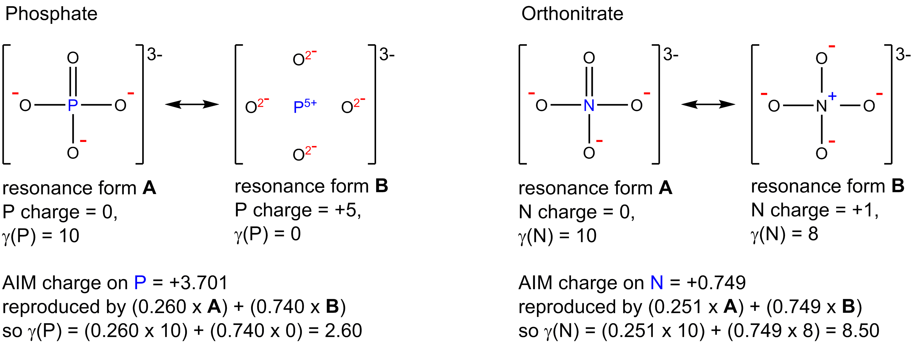 - 오르토질산염 NO43−: γ(N) = 8.5 (초원자가)