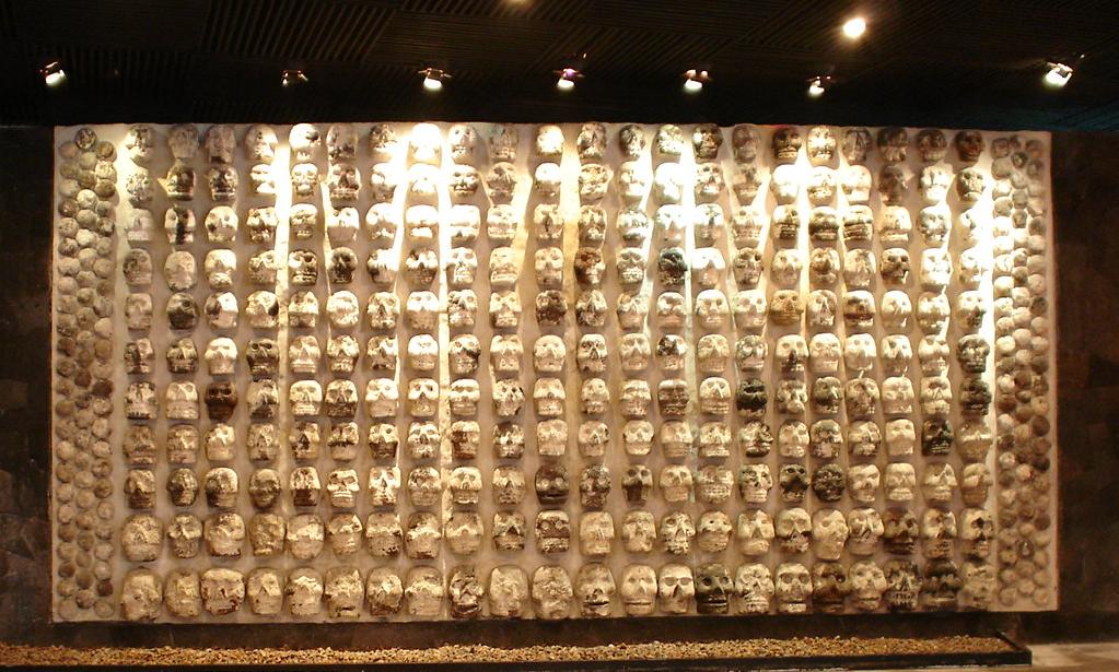 코르테스의 원정대가 아즈텍 수도 테노치티틀란에 머무는 동안, 그들은 희생된 사람들의 해골로 장식된 나무 촘판틀리|촘판틀리nci 제단을 보고했다.[16] 템플로 마요르 단지 내부에서 회반죽으로 조각된 부조는 이러한 희생을 묘사했으며, 잔해는 현재 멕시코 시티의 소칼로 유적에서 볼 수 있다.