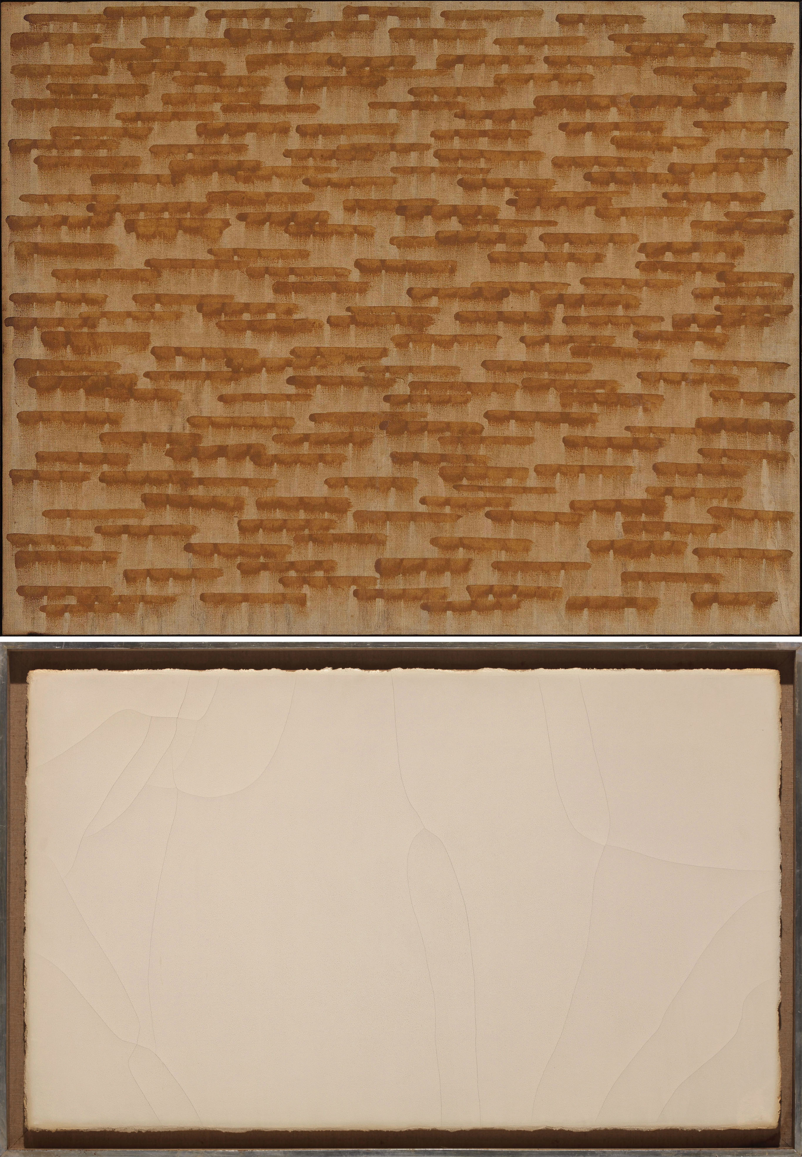 (Upper image) '' Plane Condition 8016'', 77×53.5cm Silk screen ink on section paper, 1980, (Lower image) ''Plane Condition 8036'', Oriental Ink on Korean Hanji paper, 1980.
