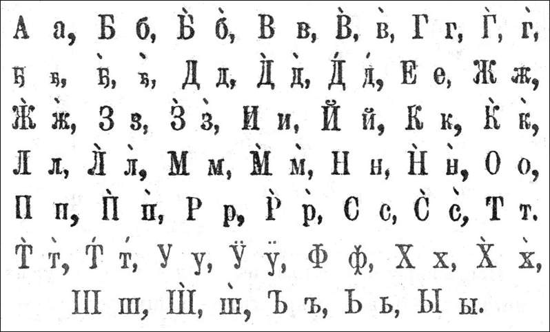 중앙아시아에서 8~10세기에 고대 튀르크 문자 (오르혼-예니세이 문자)가 튀르크어 표기에 사용되었다. 서기 7~9세기의 튀르크 비문은 다양한 방언을 사용하는 사람들이 남겼다. 추바시어(오구르어파)는 다른 튀르크어파(공통 튀르크어)와 다음과 같은 주요 음운 대응 관계에서 차이를 보인다.