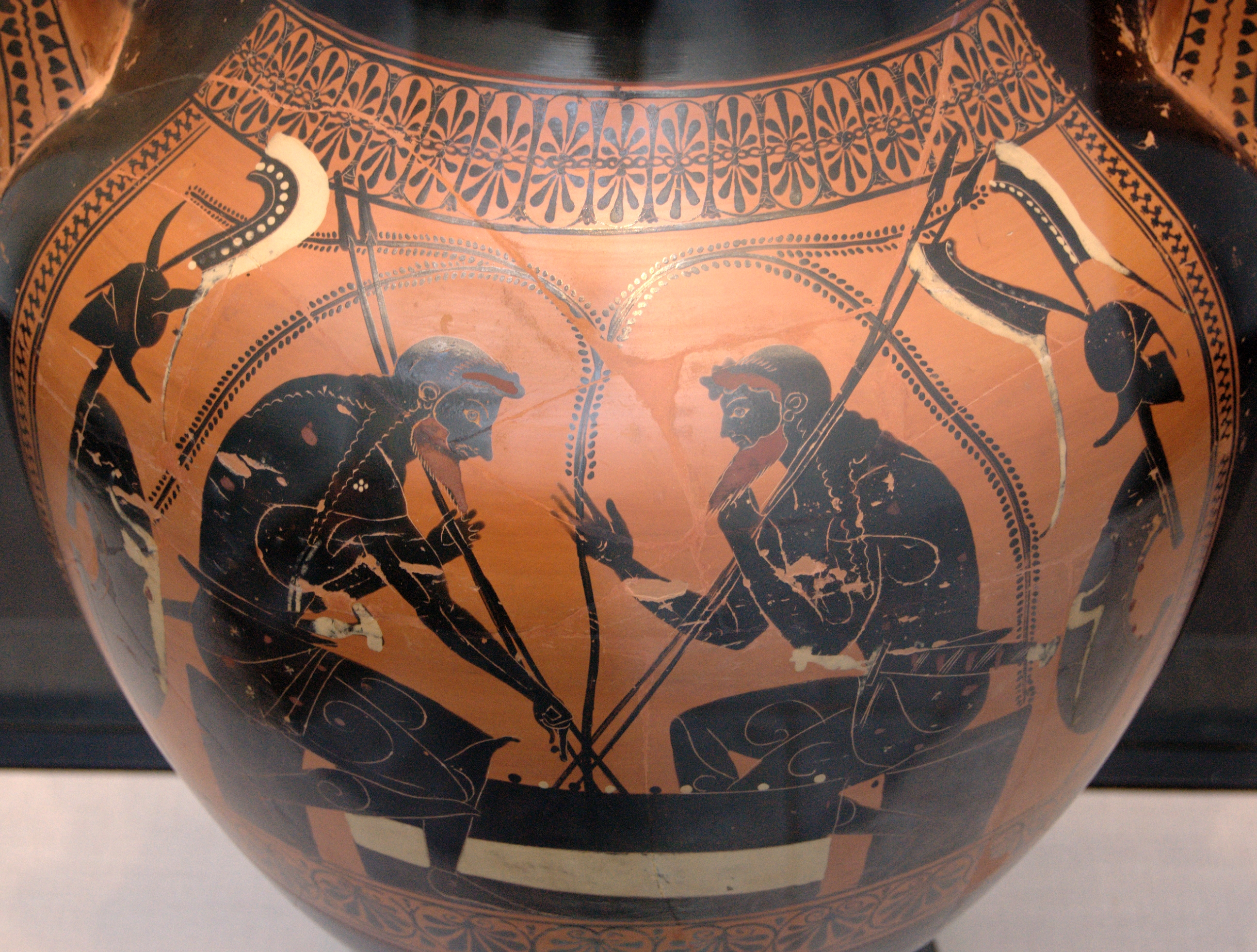 아킬레우스와 아이아스가 보드 게임을 하고 있다.