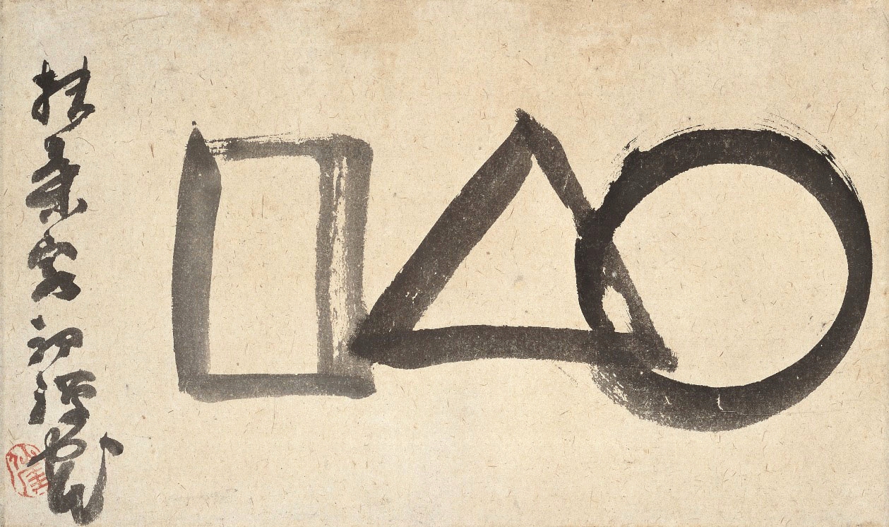 예를 들어, 가로로 긴 캔버스에 왼쪽부터 “○△□”를 유채 또는 수채로 그린 그림이 있을 때, 그림 제작자의 주관에 따라 구상 회화, 추상 회화, 디자인·마크·기호·무늬 등으로 구분된다. 에도 시대의 선승 선외의범(仙厓義梵)의 작품 중에는 실제로 “○△□"를 그린 작품이 존재한다.[52]