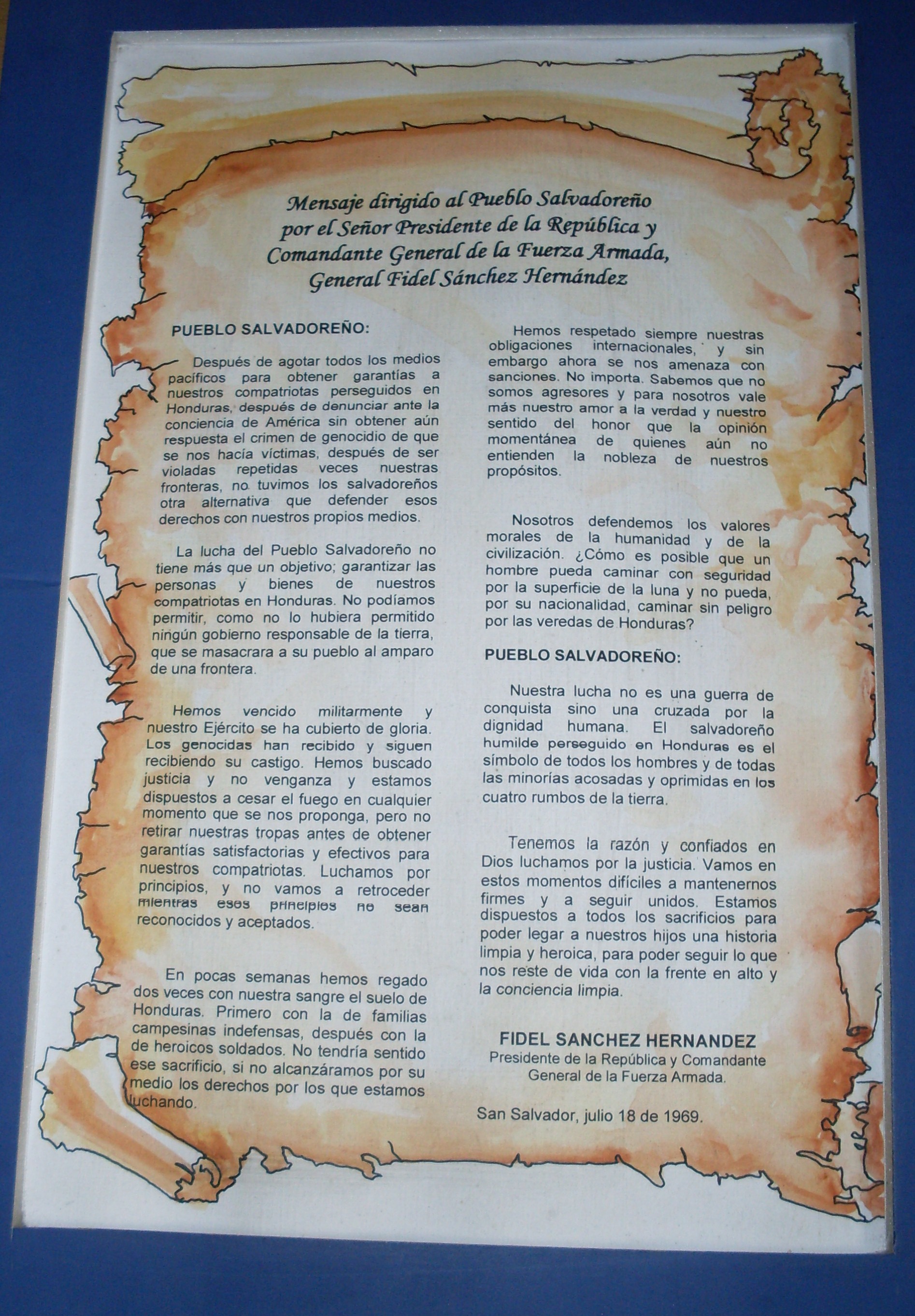 OAS 발표에 따르면 양국은 중앙 아메리카 시간 7월 18일 22시부터 정전에 들어가고,[98] 3개국으로 구성된 감시단의 지휘 아래 양국 군대를 96시간 이내에 철수시킬 예정이었다.[99] 그러나 엘살바도르의 에르난데스 대통령은 같은 날 방송에서 점령 지역으로부터의 철수를 거부하는 성명을 발표했다.[98]