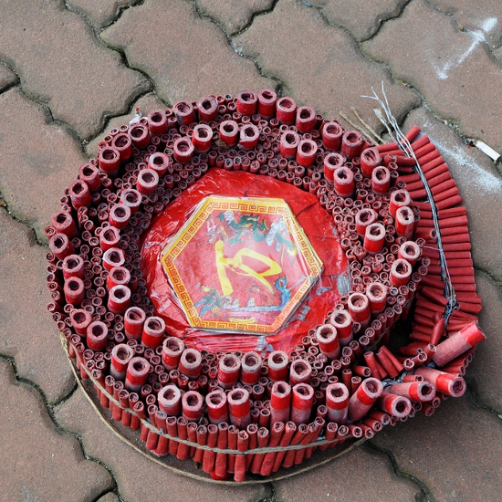 남북조 시대의 책 에는 설날 이른 아침 대나무를 태우는 풍습이 묘사되어 있다.[34]