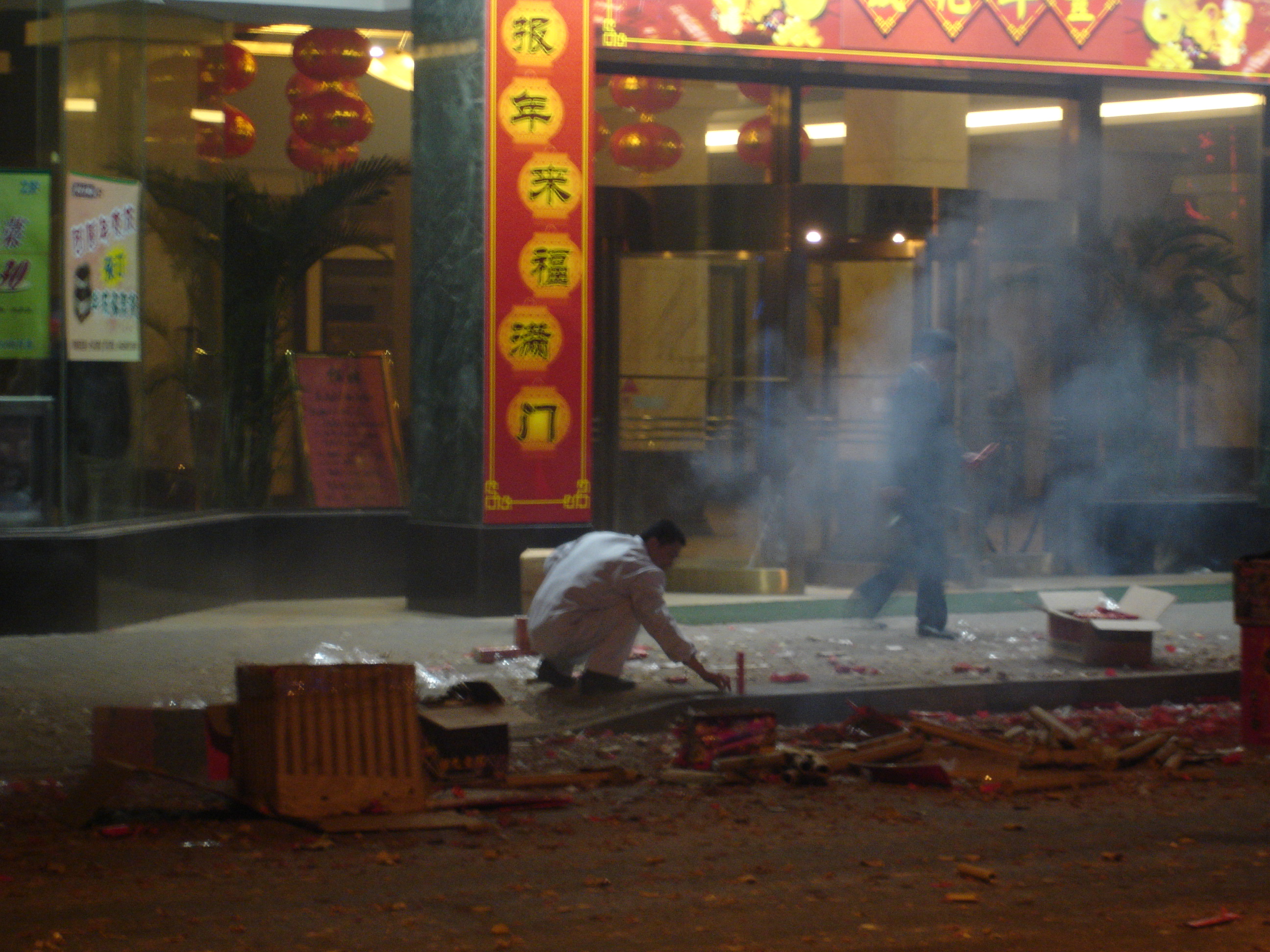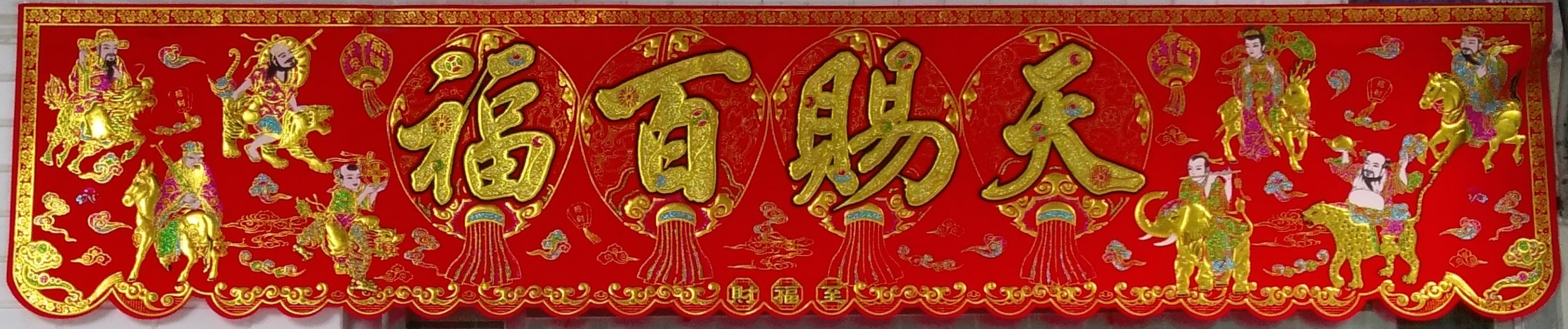 대문에는 붉은 대련과 붉은 등롱이 걸려 분위기를 밝힌다. 신문련보(Xinwen Lianbo)에 따르면, 베이징, 상하이, 우한 등 도시의 상점에서는 전통 중국식 제품들이 유행을 선도하기 시작했으며, 중국풍 코트를 사 입고, 아이들에게 호랑이 머리 모자와 신발을 신겨주고, 아름다운 붉은 중국 매듭으로 집을 장식하면 진정한 중국식 춘절 분위기를 낼 수 있다고 한다.[64]