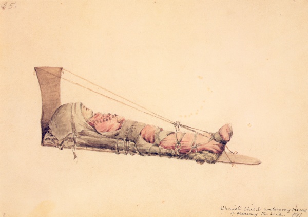 일부 부족 엘리트들은 사회적 지위를 나타내기 위해 아이들의 머리를 납작하게 하는 머리 변형 관행을 가졌다. 이들은 유아의 머리를 판자 사이에 넣어 압력을 가해 묶는 방식으로 머리 모양을 변형시켰다.[11] 머리가 납작한 사람들은 둥근 머리를 가진 사람들보다 높은 계급으로 여겨졌으며, 이로 인해 치누크족은 "납작 머리 인디언"이라고 불리기도 했다.