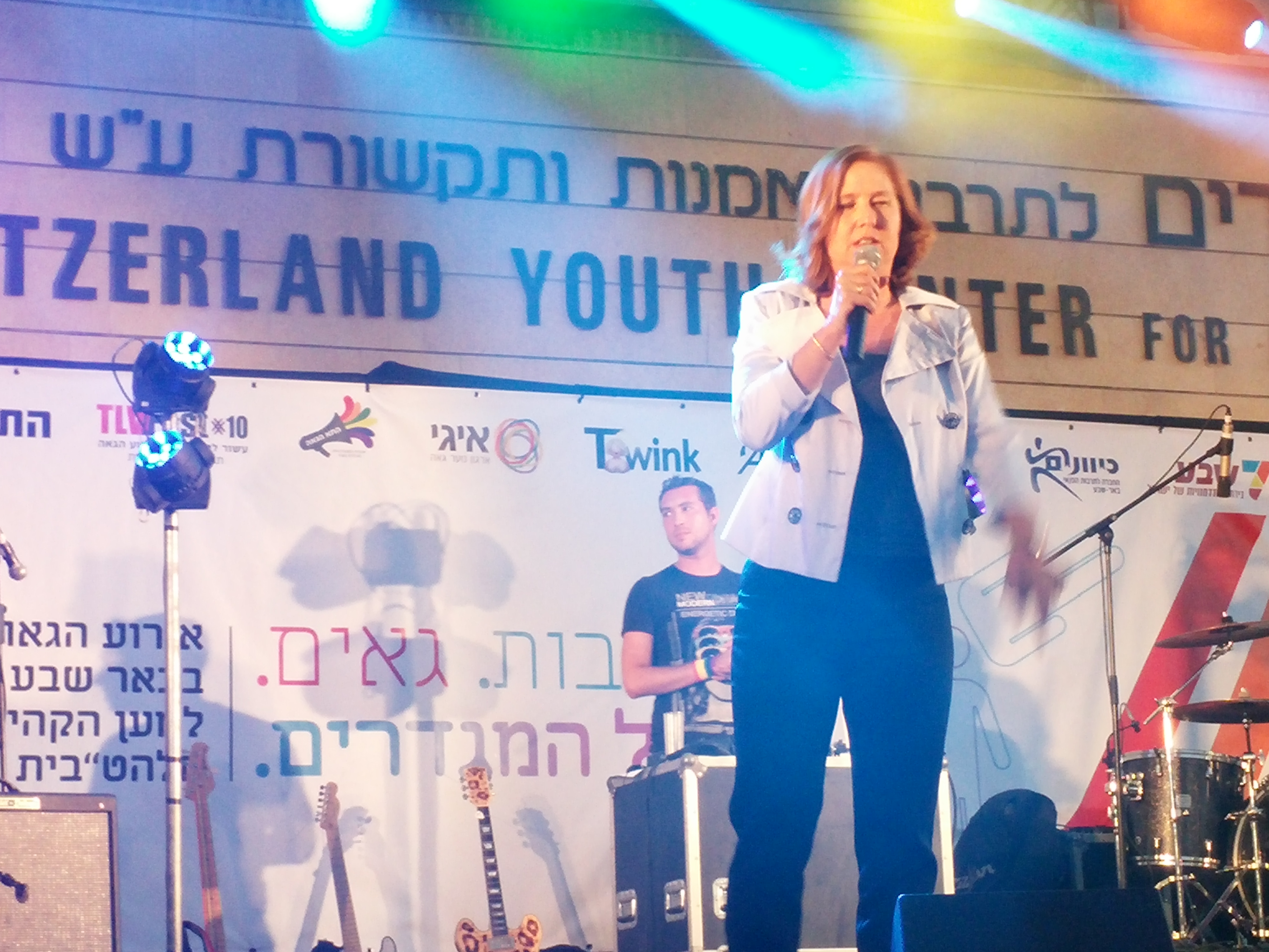 리브니는 2009년 6월 게이 및 레즈비언 프라이드 행사를 앞두고 이스라엘의 게이 커뮤니티를 지지했다. 그녀는 텔아비브 메이어 공원에 있는 게이 커뮤니티의 시립 센터에서 열린 행사에 참석했다.[71][72] 2009년 8월 1일, 텔아비브에서 2명이 사망하고 15명이 부상당한 게이 청소년 센터 공격 이후, 게이 및 레즈비언 커뮤니티와 접촉하고 있는 리브니는 "이 사건은 사회, 그리고 정치권과 교육 시스템을 포함한 모든 관련 조직에 충격을 주어야 하며, 이 날 관용, 선동 및 폭력에 반대하는 명확한 메시지를 전달하고 이러한 모든 현상에 대응해야 합니다."라고 말했다. 그녀는 수백 명의 이스라엘인 및 일부 다른 정치인들과 함께 공격 현장 근처에서 열린 집회에 참석하여 "증오 범죄"에도 불구하고 이스라엘의 게이 및 레즈비언 커뮤니티가 계속해서 삶을 살아가도록 촉구했다.[73] 리브니는 네타냐후의 토지 개혁 법안에 반대했다.[74]
