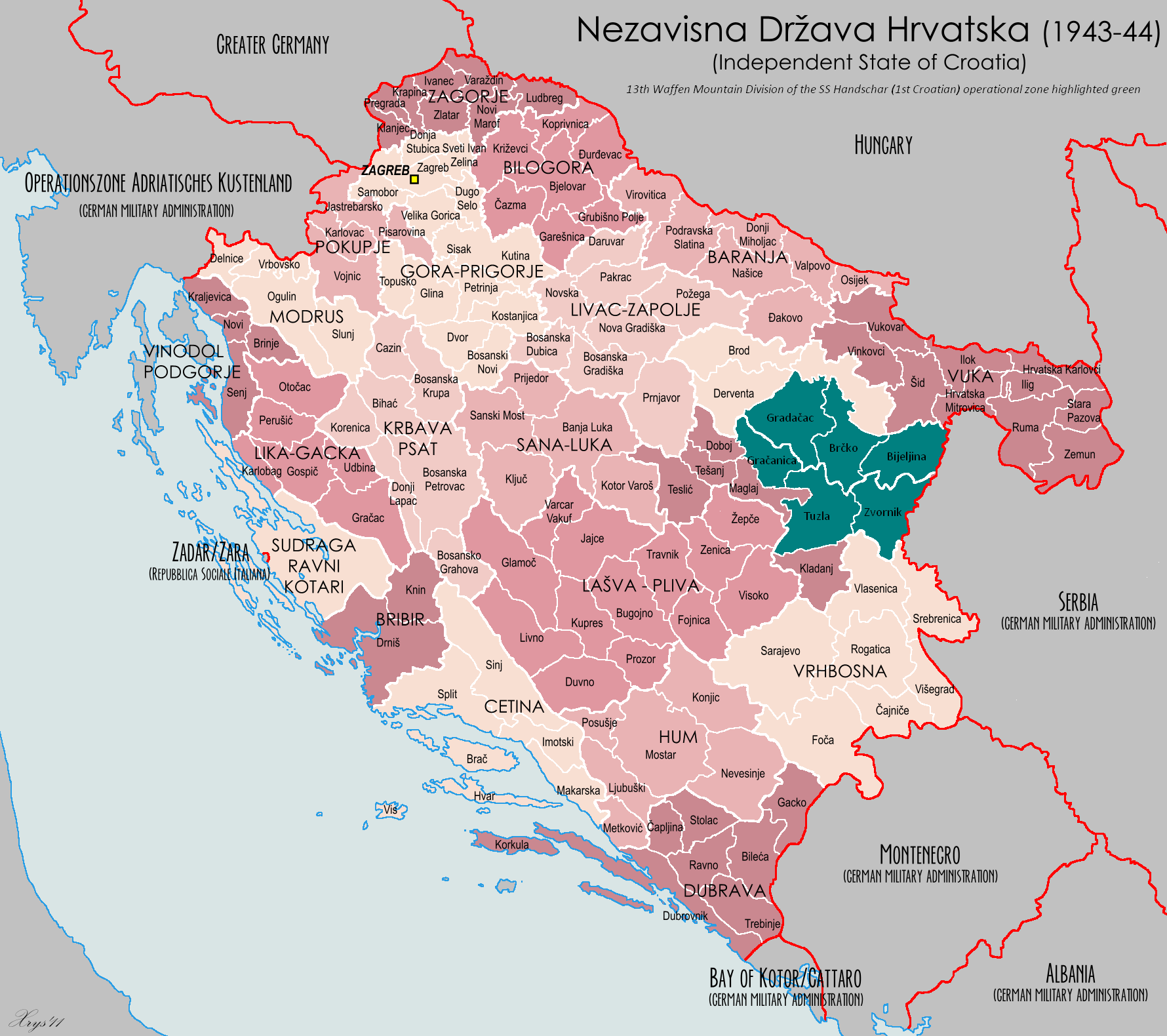 1941년 4월 6일, 추축국이 유고슬라비아 왕국을 침공한 후, 이탈리아 왕국에서 망명 생활을 하던 극단적인 크로아티아 민족주의자이자 파시스트인 안테 파벨리치가 우스타샤가 이끄는 크로아티아 국가의 포글라브니크|지도자hr로 임명되었다. 이 국가는 크로아티아 독립국(흔히 NDH, Nezavisna Država Hrvatskahr에서 유래)로 불렸다. NDH는 현대 크로아티아의 거의 전부, 현대 보스니아 헤르체고비나의 전부, 현대 세르비아 일부를 "이탈리아-독일의 준-보호령"으로 통합했다. NDH 당국은 우스타샤 민병대가 주도하여, 새로운 국가의 경계 내에 거주하는 세르비아인, 유대인, 로마인 인구에 대한 집단 학살 정책을 시행했다.