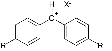 상대적인 양이온 반응성에 대한 값은 말라카이트 그린 양이온의 경우 -0.4, 벤젠다이아조늄 양이온의 경우 +2.6, 트로필륨 양이온의 경우 +4.5이다.