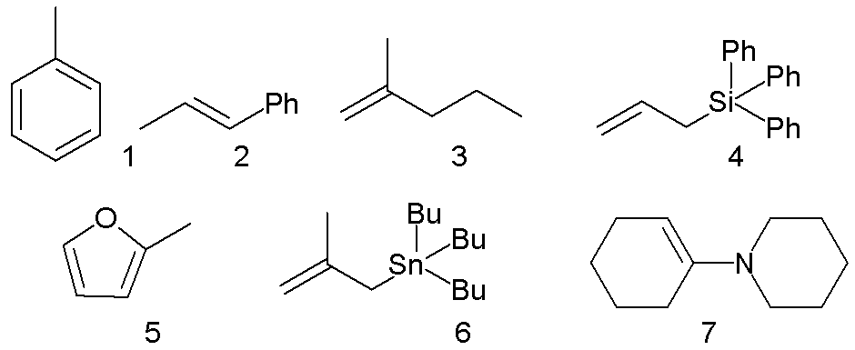다양한 π-친핵체들을 이용하였다.
