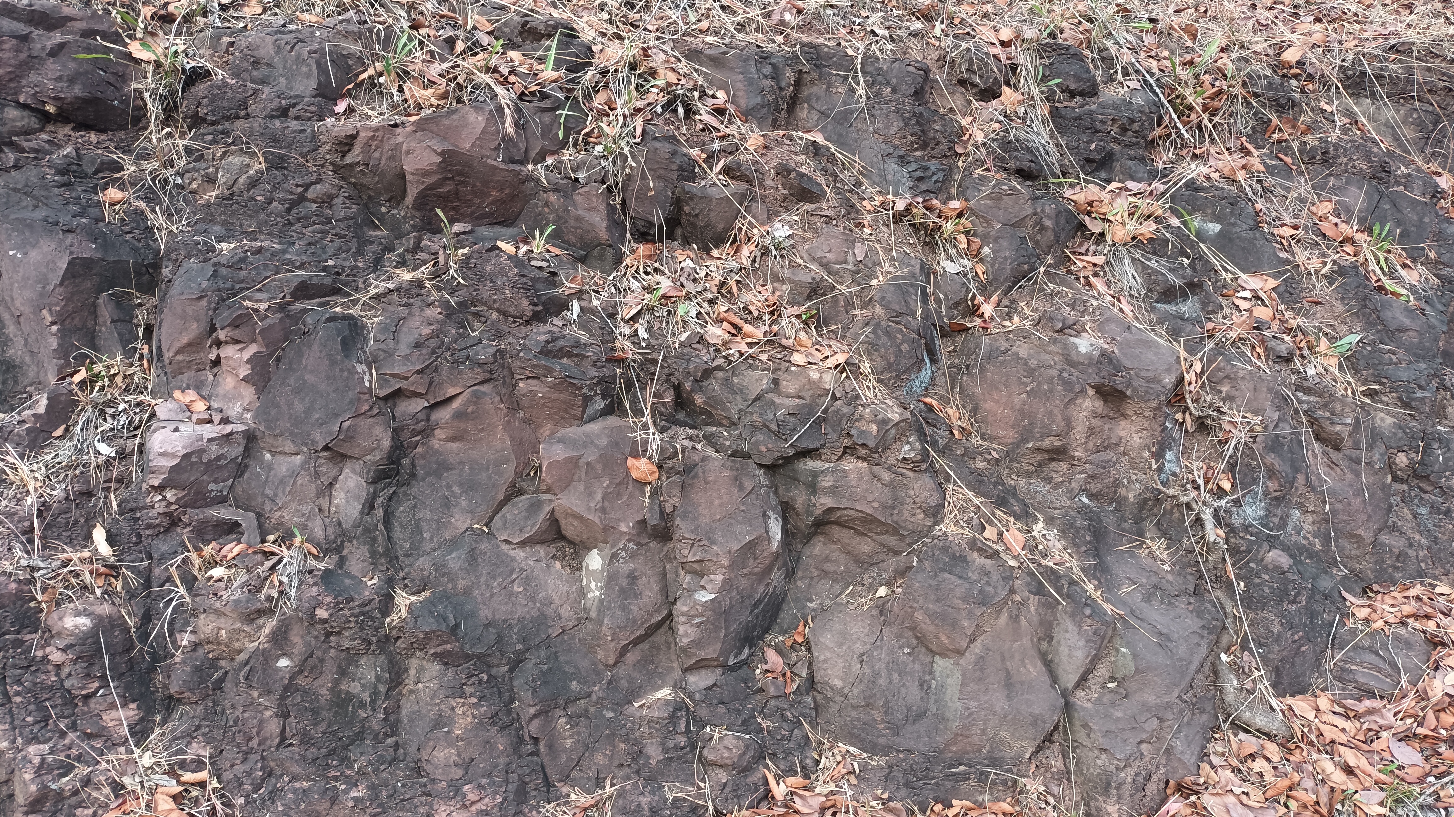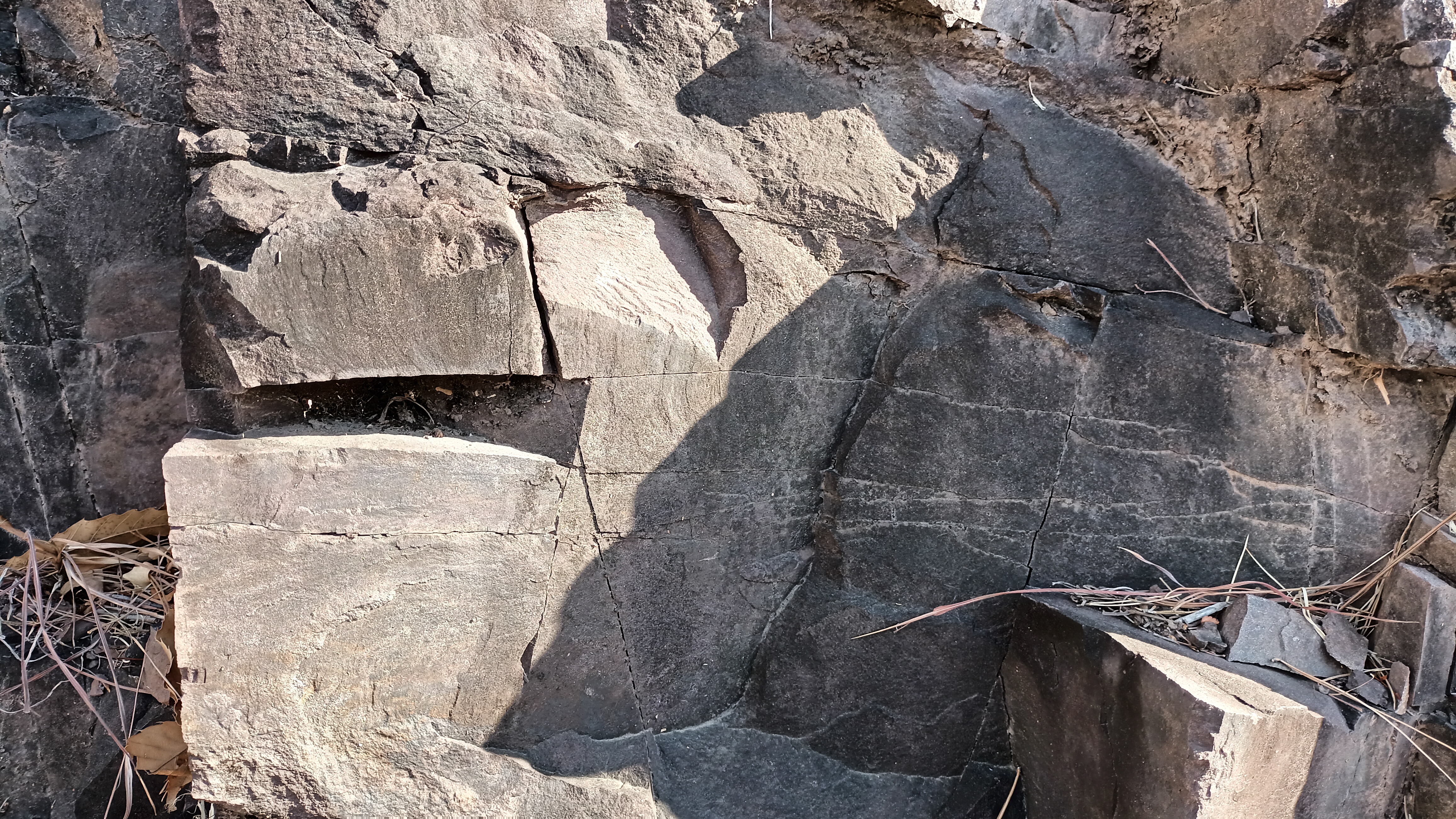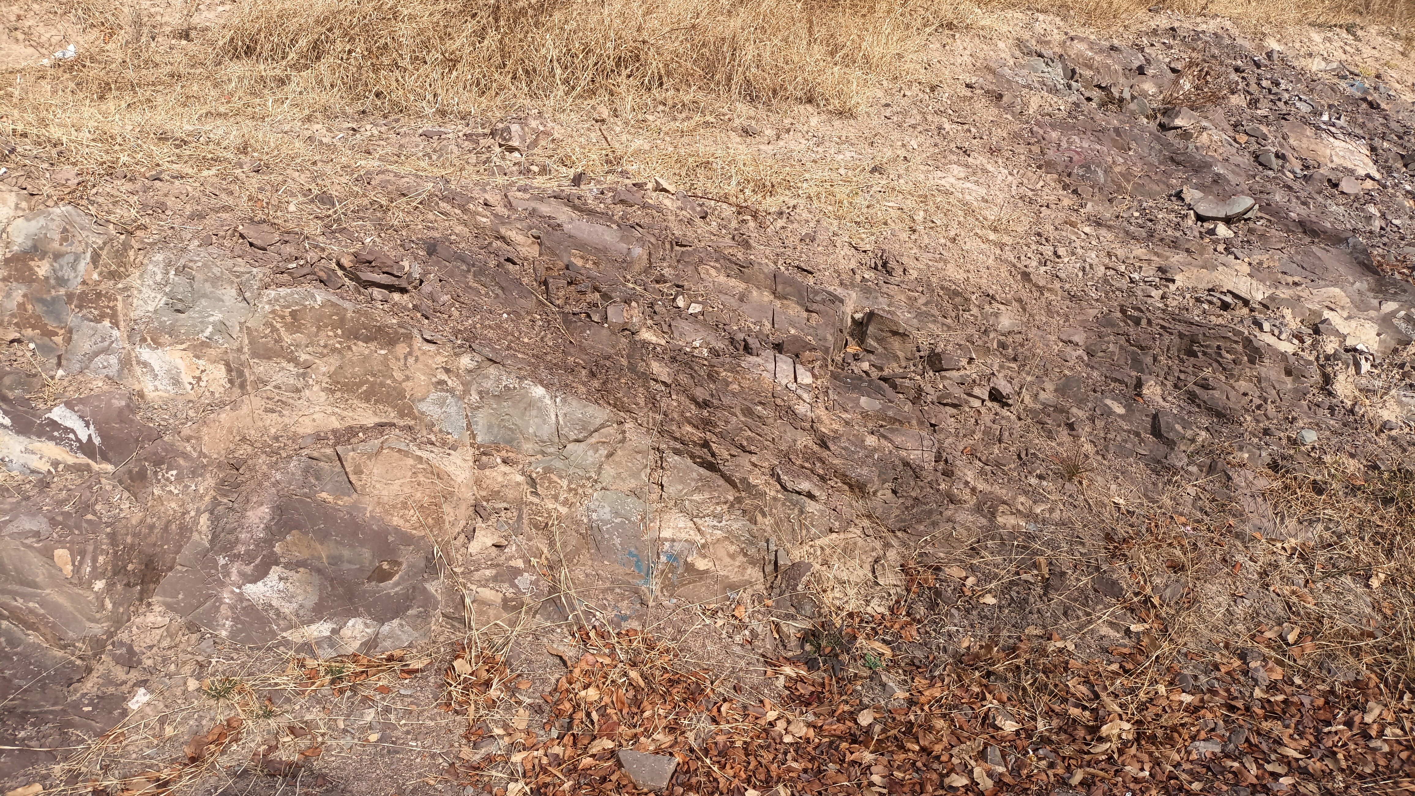 경상남도 고성군 일대에 분포하는 고성층은 붉은색 이암, 사암 등으로 구성되어 있으며, 공룡 발자국, 공룡 알, 거북 알 화석 등 다양한 화석과 고성층과 제4기 지층을 절단하는 단층이 발견된다. - 사암 지층 - 퇴적암