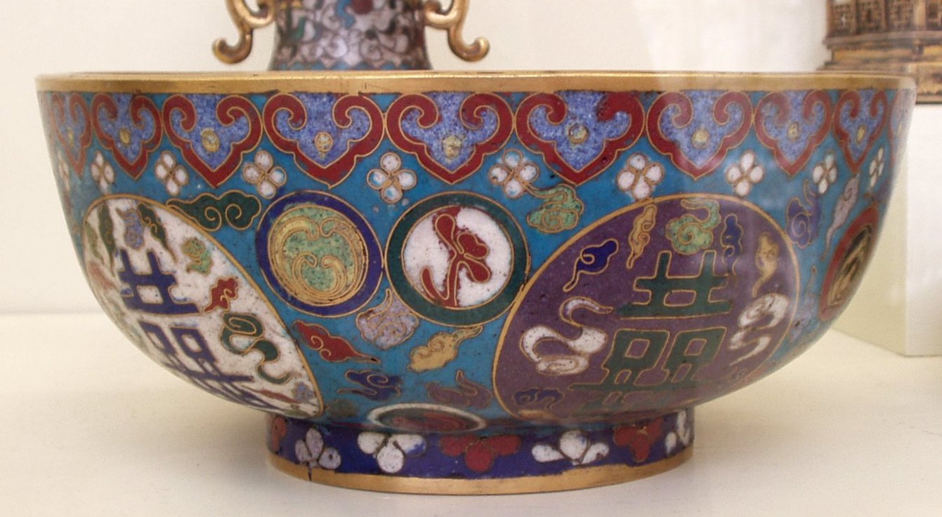 비잔티움 제품, 그리고 중국 제품에서 더욱 두드러지게 나타나는 점은 철사가 항상 별도의 에나멜 색상을 둘러싸고 있는 것은 아니라는 것이다. 때로는 철사가 단지 장식 효과로만 사용되어 에나멜 면의 중간에서 멈추고, 때로는 두 가지 에나멜 색상 사이의 경계가 철사로 표시되지 않는다.