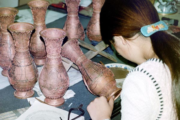 칠보는 금속 표면에 유리질 유약을 부착하여 장식하는 기법이다.